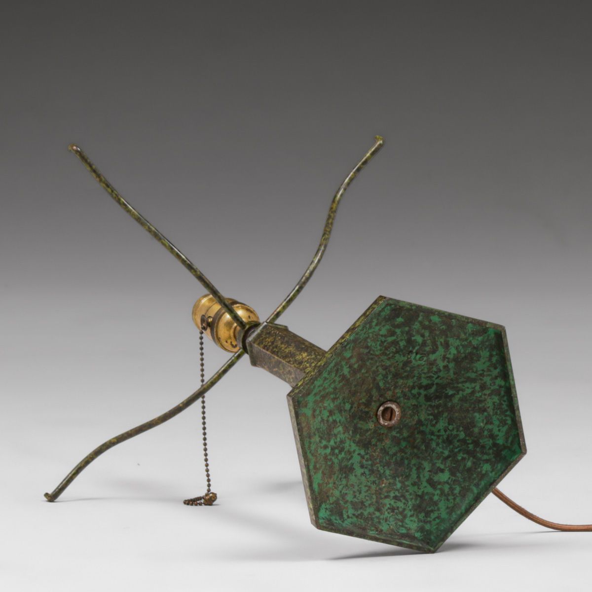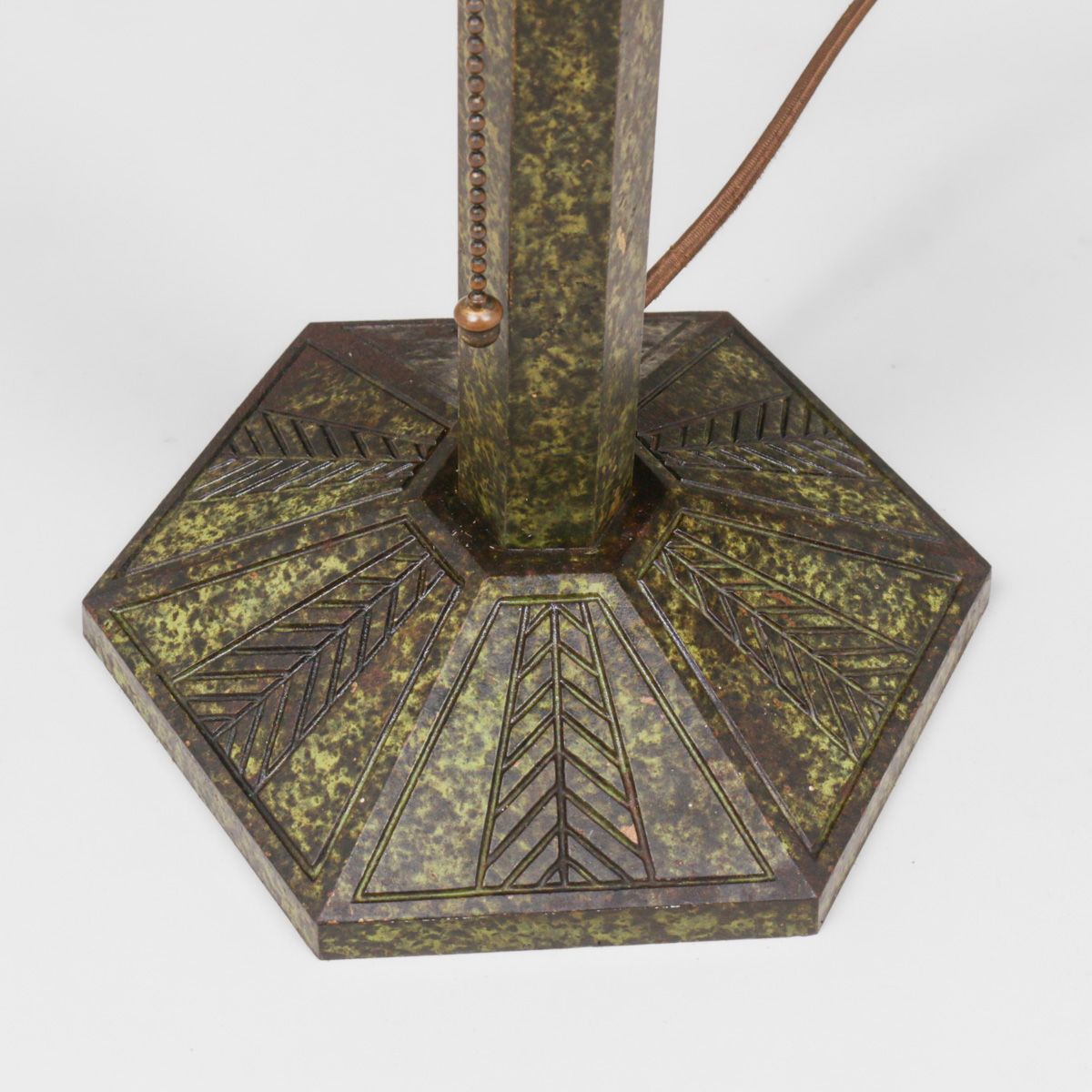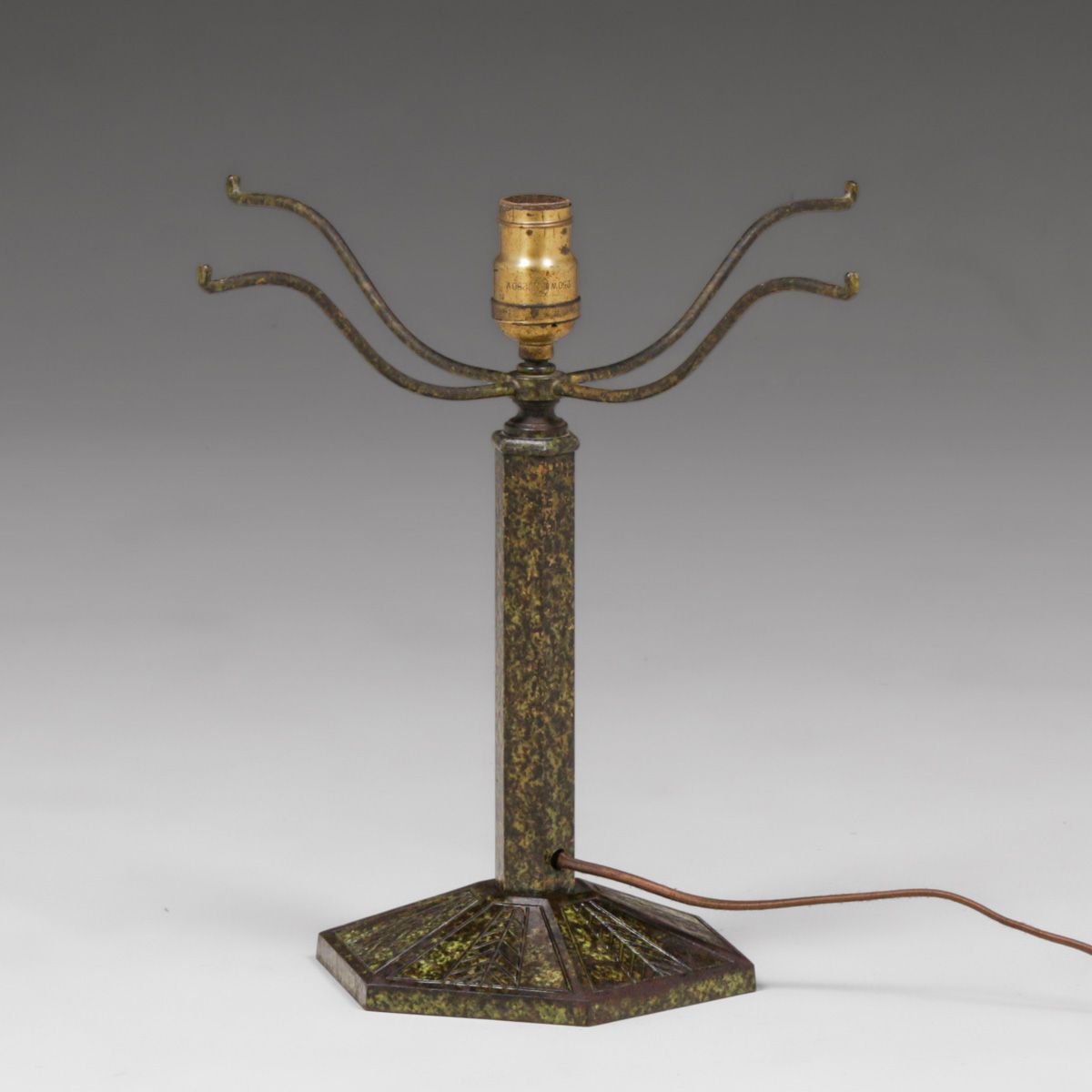 - Bradley & Hubbard #216 Prairie School Overlay Slag Glass Lamp c1910