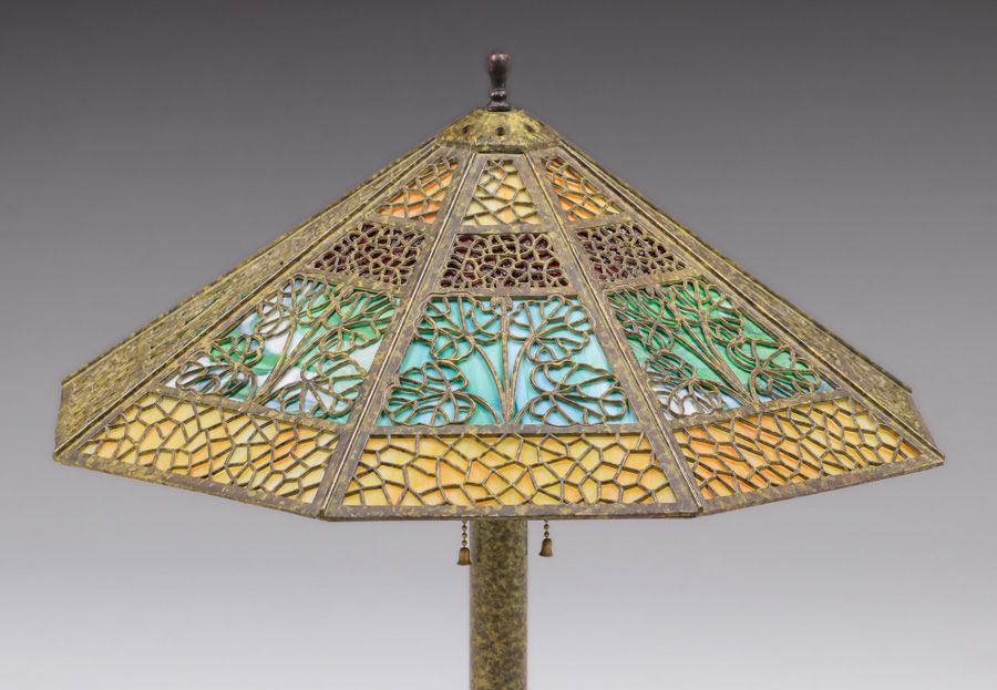Bradley & Hubbard Brass & Colorful Slag Glass Lamp c1910s. Unsigned. Excellent original patina. Original glass in perfect condition. 21”h x 20”d SOLD