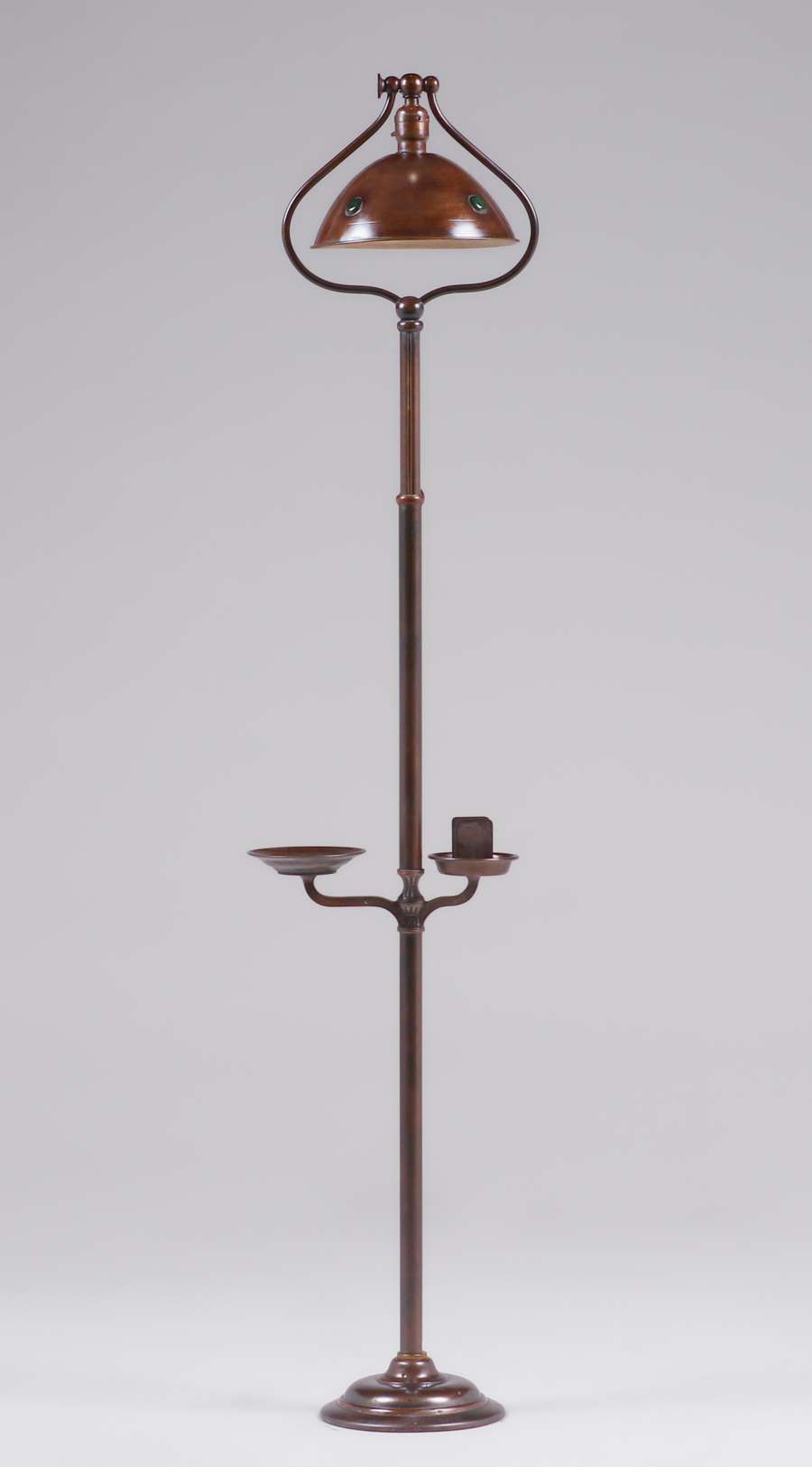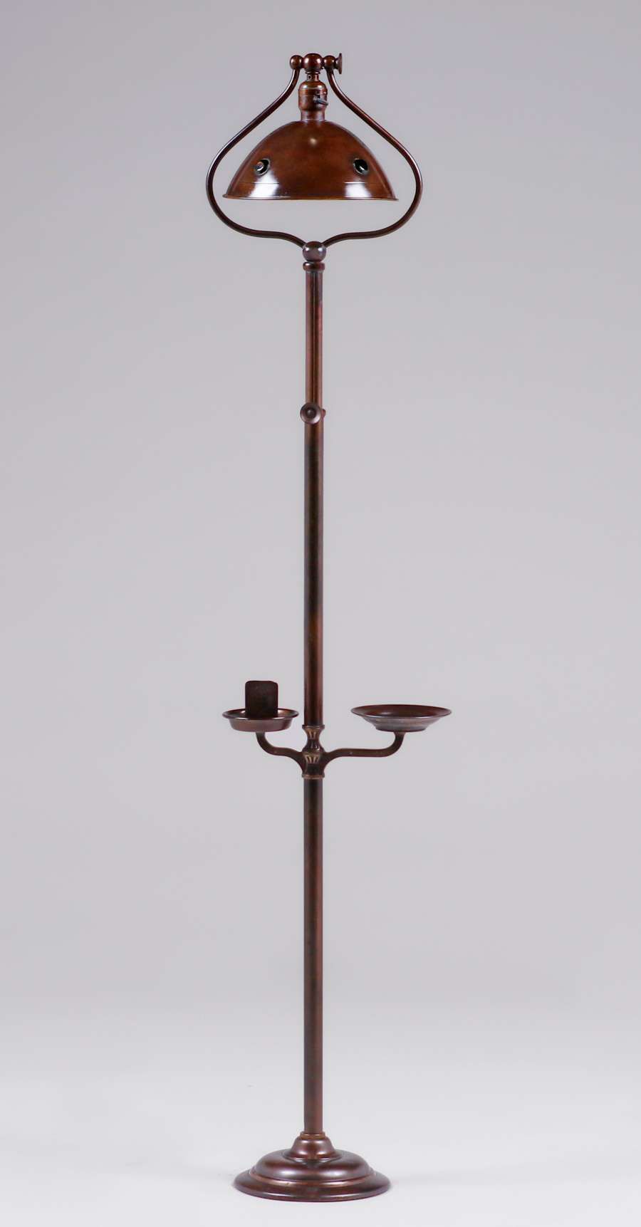 Bradley & Hubbard Brass Standing Smoker's Lamp c1910s. Unsigned. Excellent new patina. 58.5"h x 11"w at top SOLD