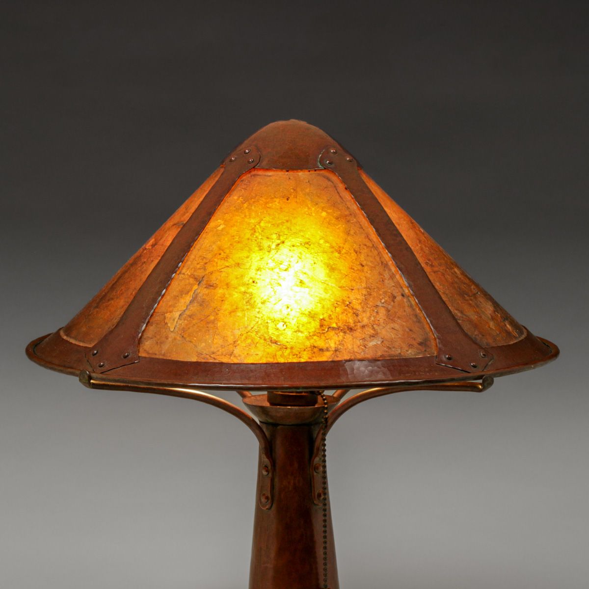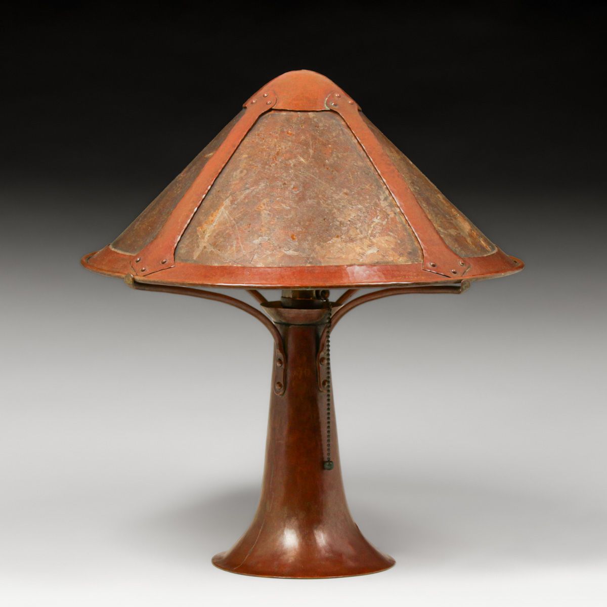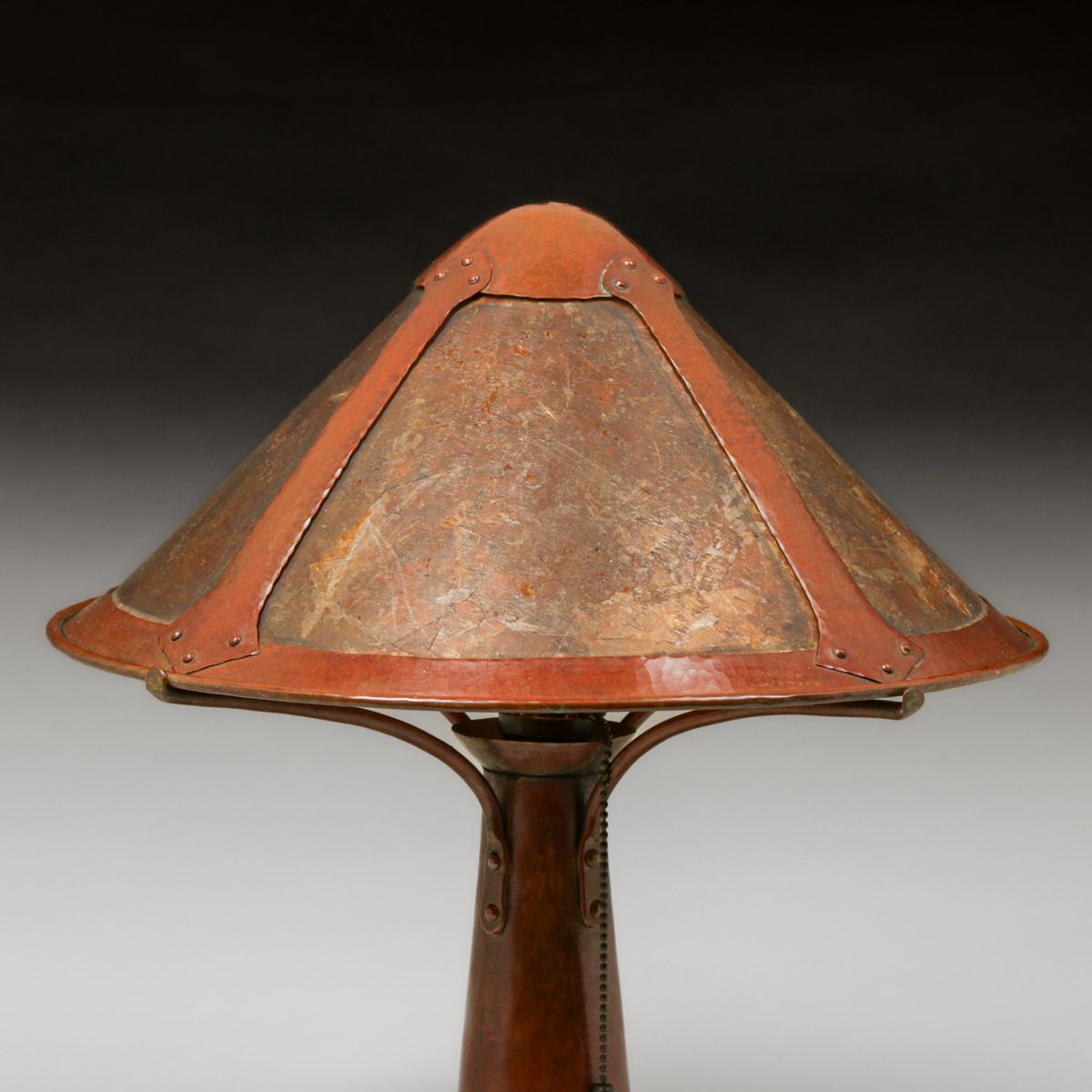- Early Dirk van Erp Hammered Copper & Mica Lamp c1911-1912