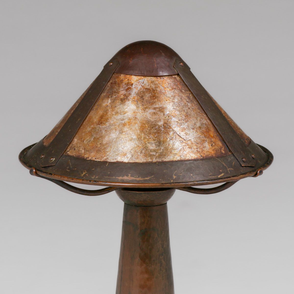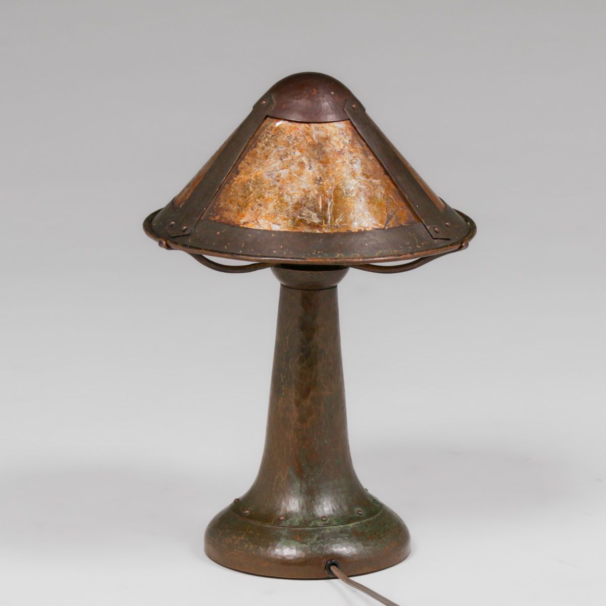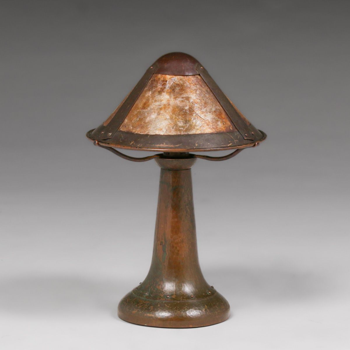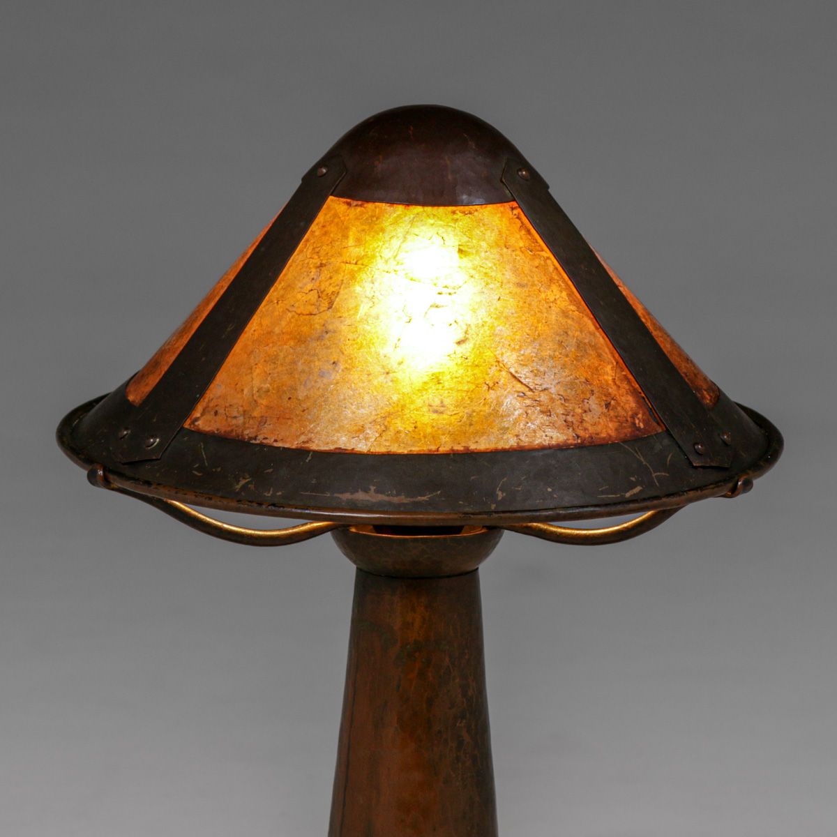 - Early Dirk van Erp Hammered Copper & Mica Rivet Base Lamp c1909