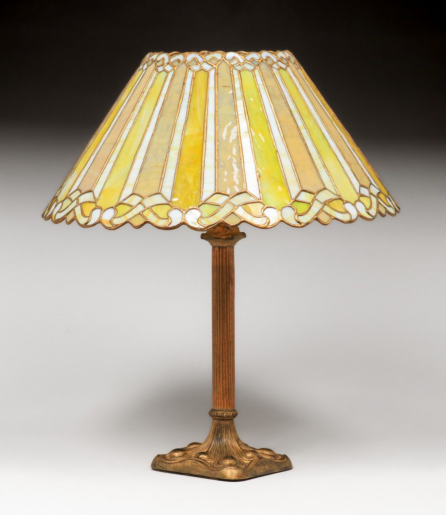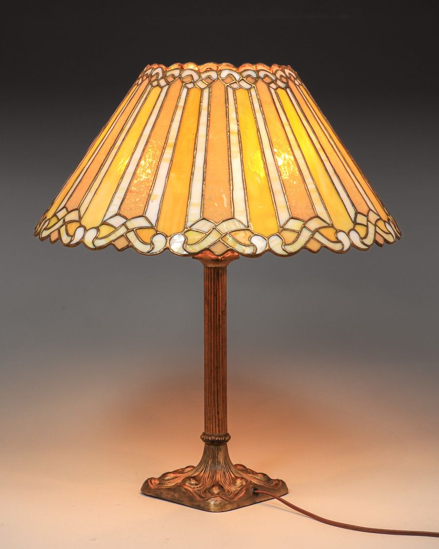 Duffner & Kimberly Leaded Glass Lamp c1910. Unsigned. A few tight lines in shade, otherwise perfect condition. Excellent original patina. 22.5"h x 18.75"d SOLD