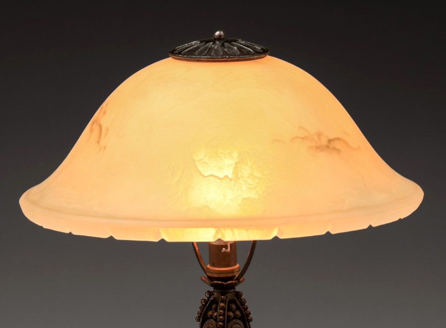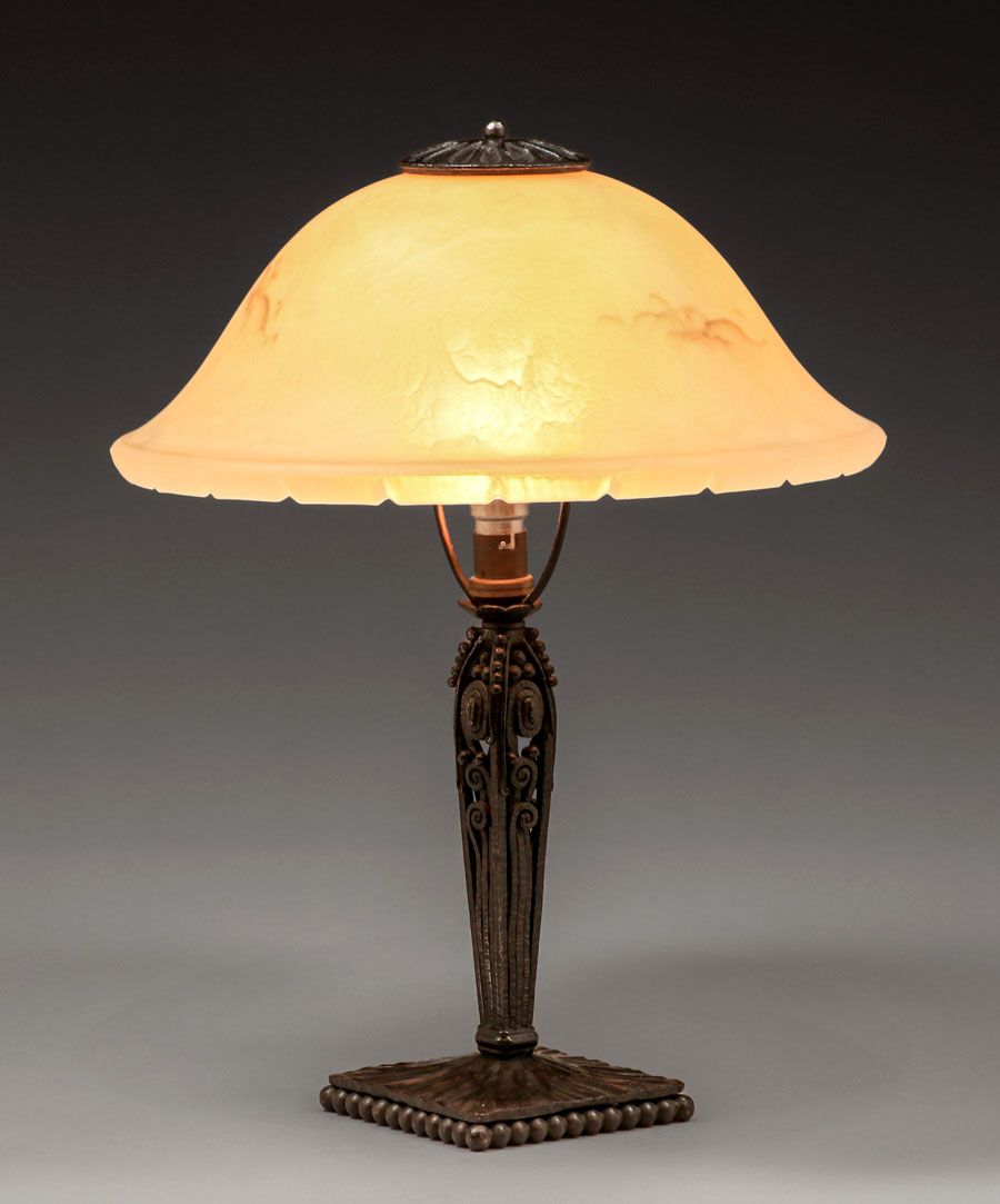 - Edgar Brandt - French Art Deco Iron & Art Glass Lamp c1920s
