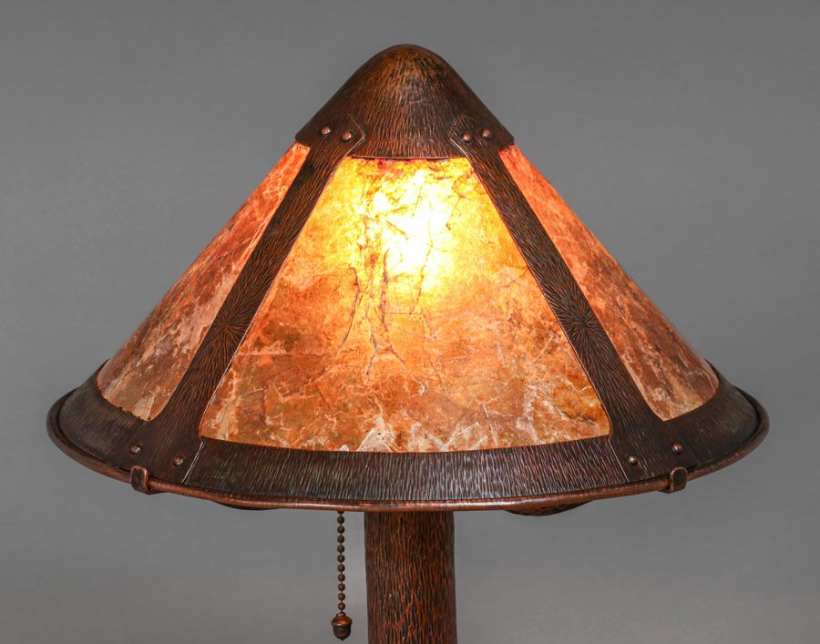 - Fred Brosi Ye Olde Copper Shoppe Hammered Copper & Mica Lamp c1915