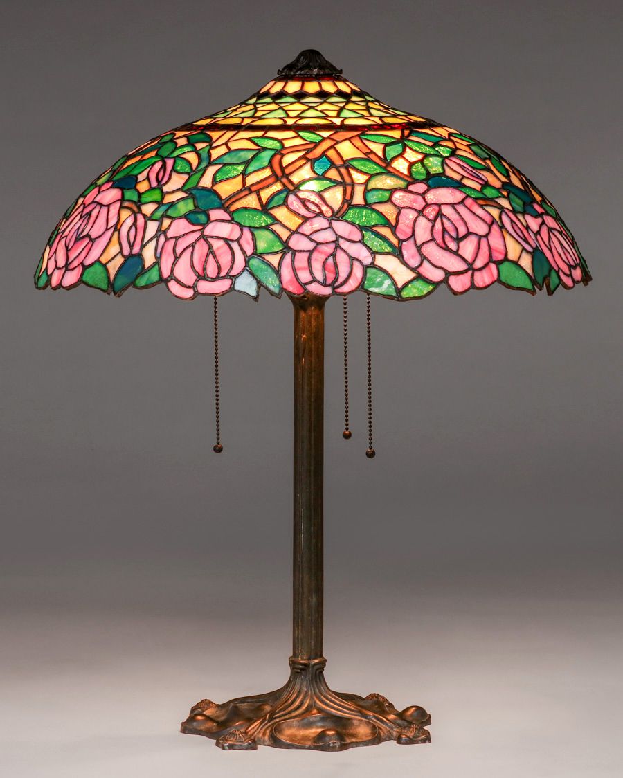 - Gorham Rose Medallion Leaded Glass Lamp c1905
