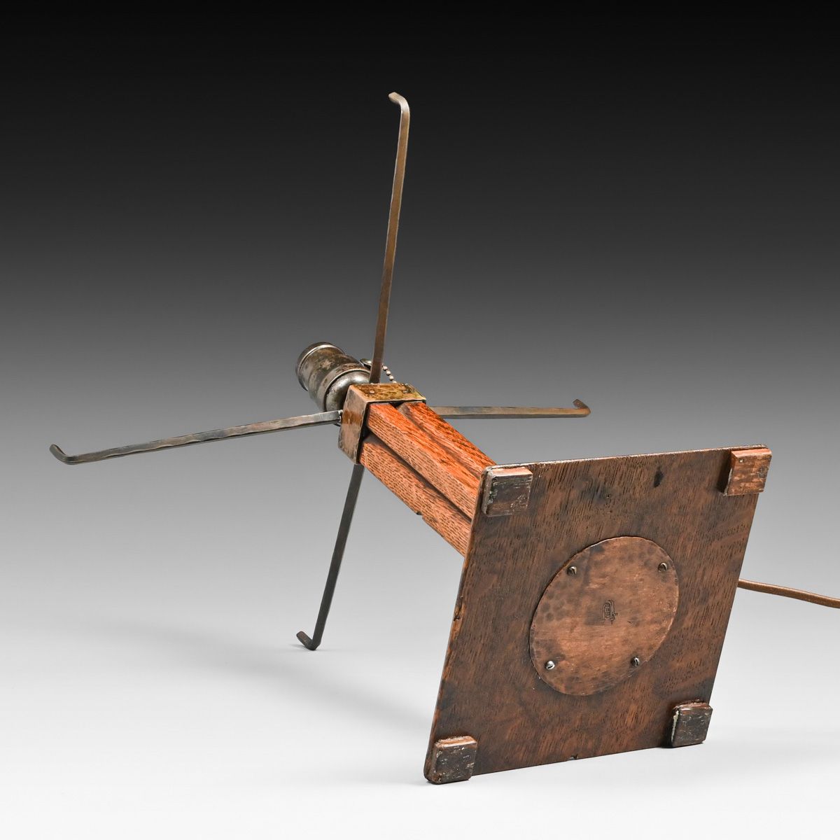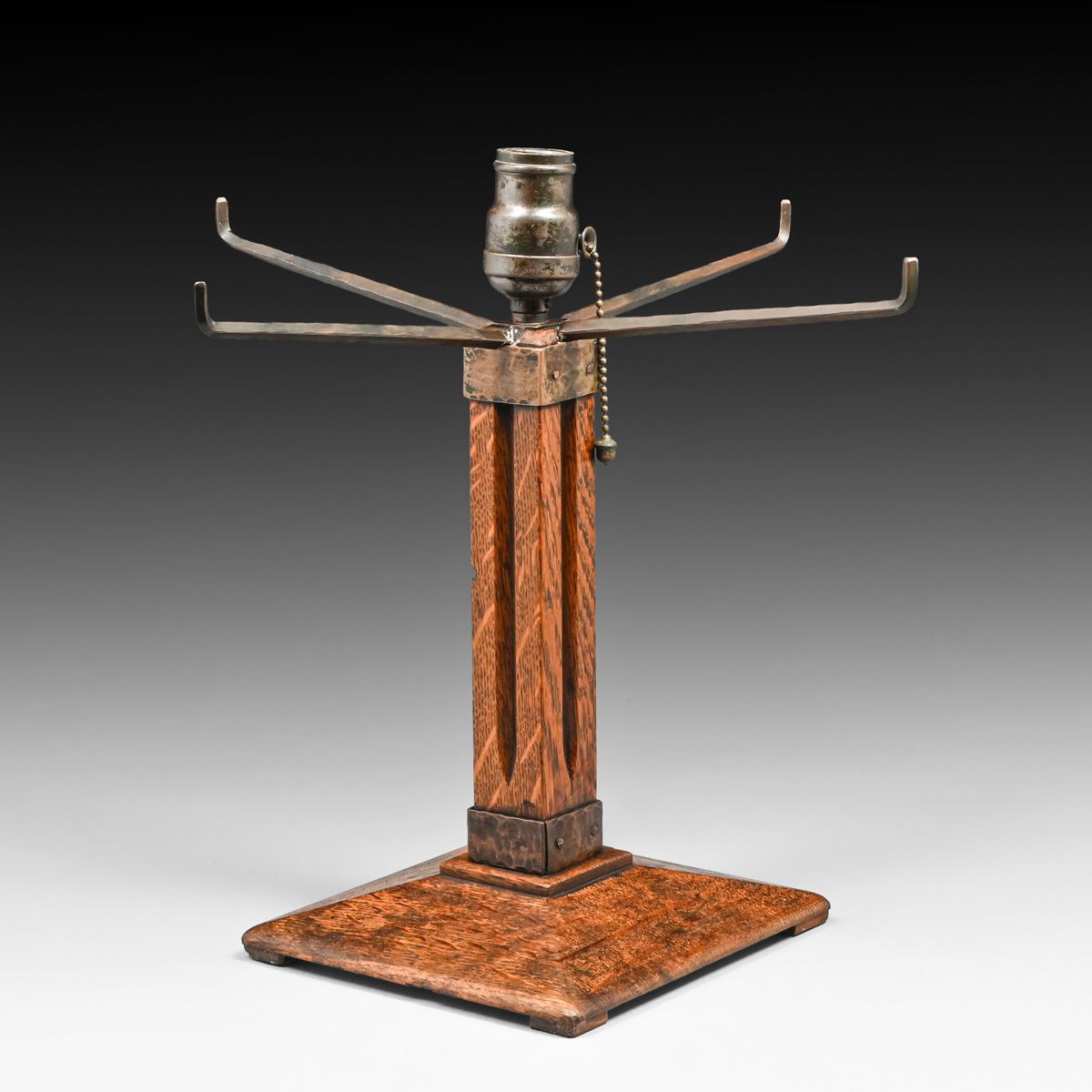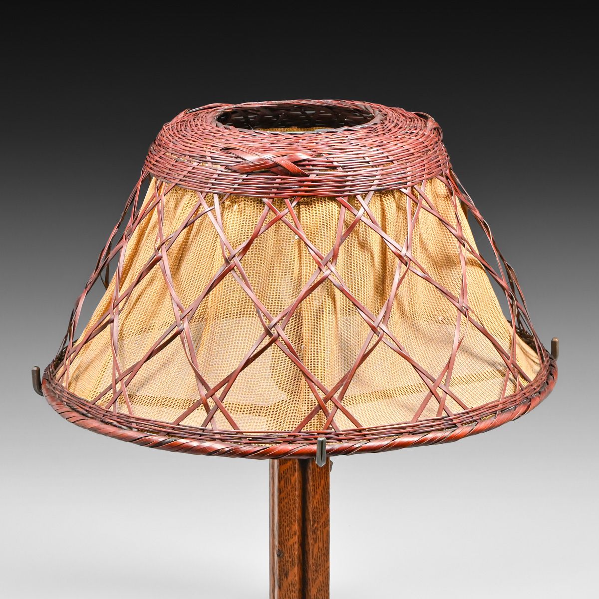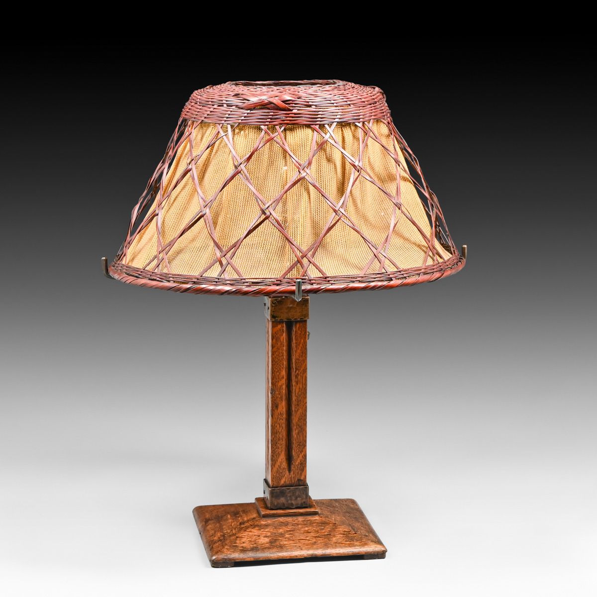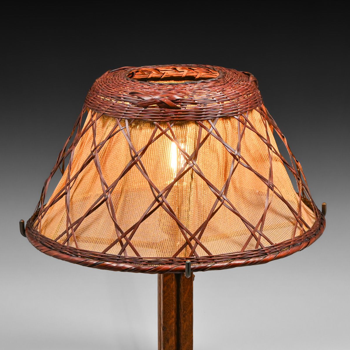 - Gustav Stickley Oak & Japanese Wicker Lamp c1910