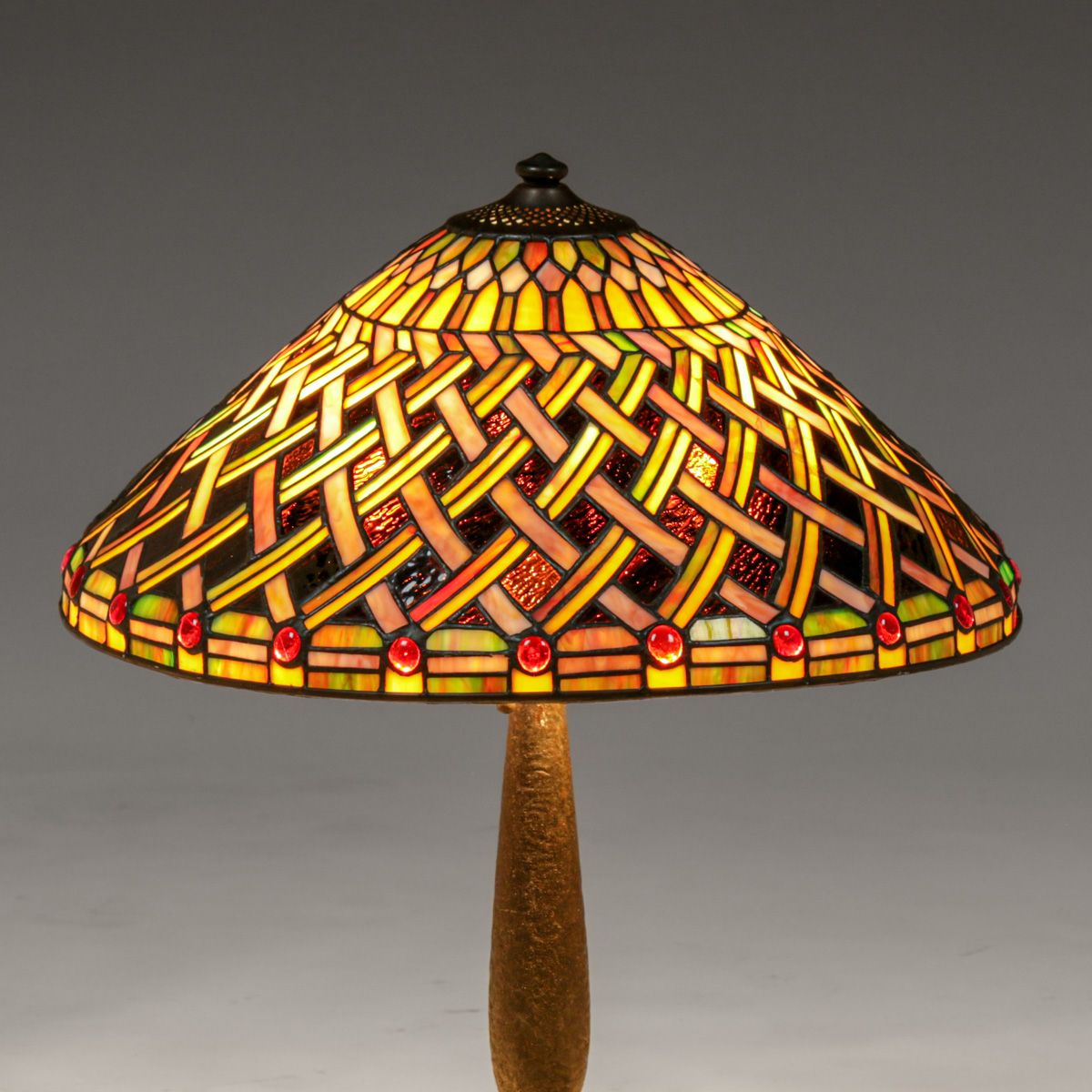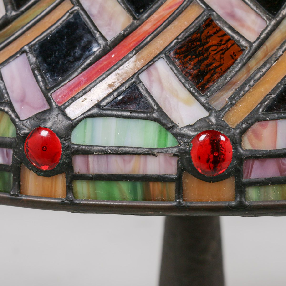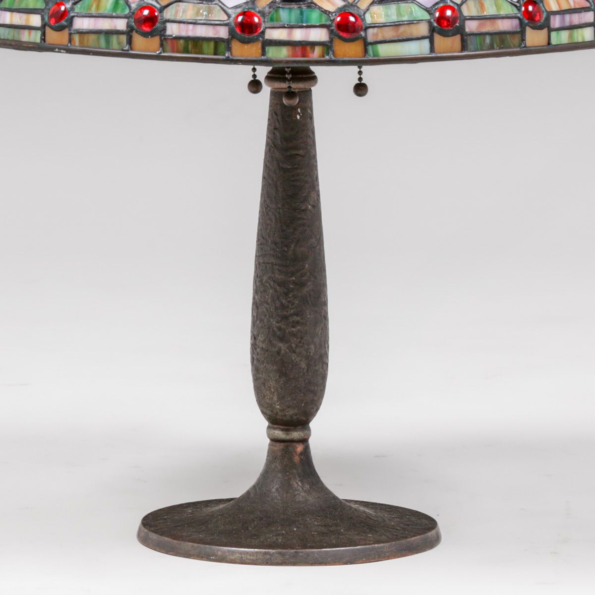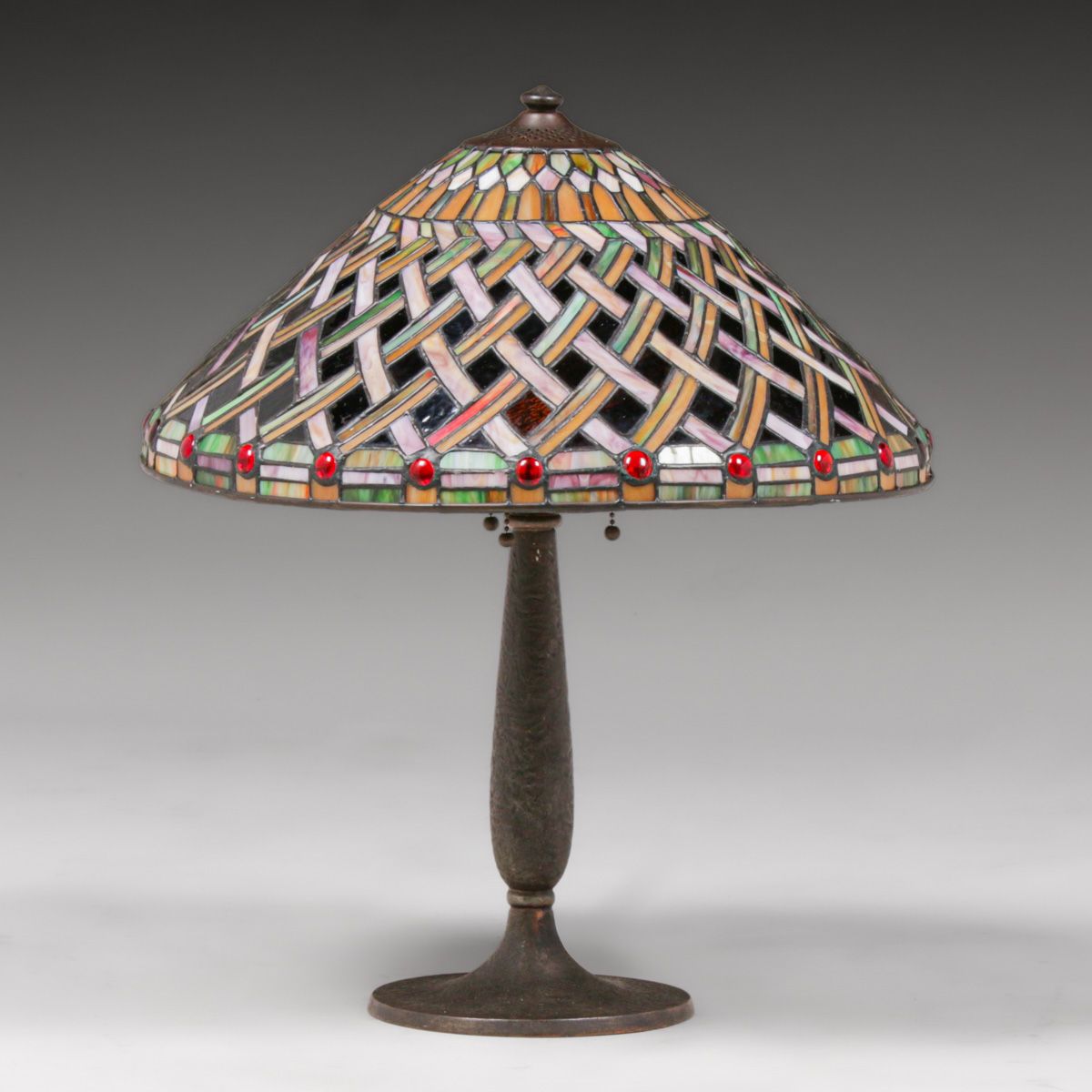 Arts & Crafts Period Leaded Glass Table Lamp c1910. Base signed Handel. The shade is of the period but not Handel and is in excellent condition. 21"h x 18"d.