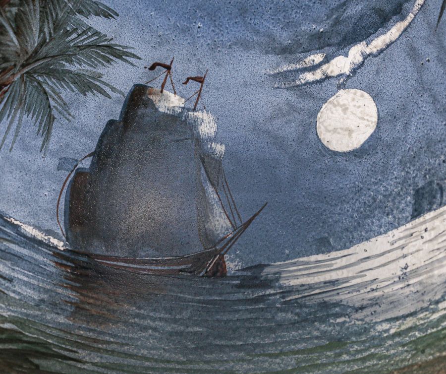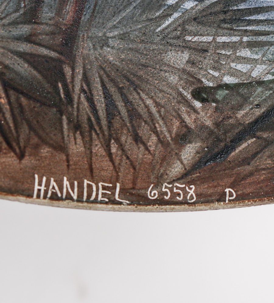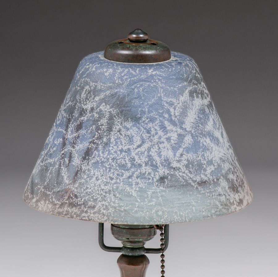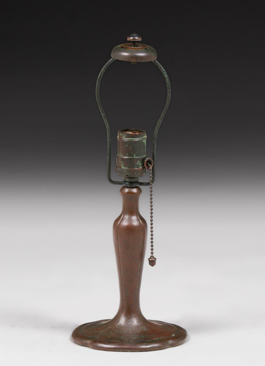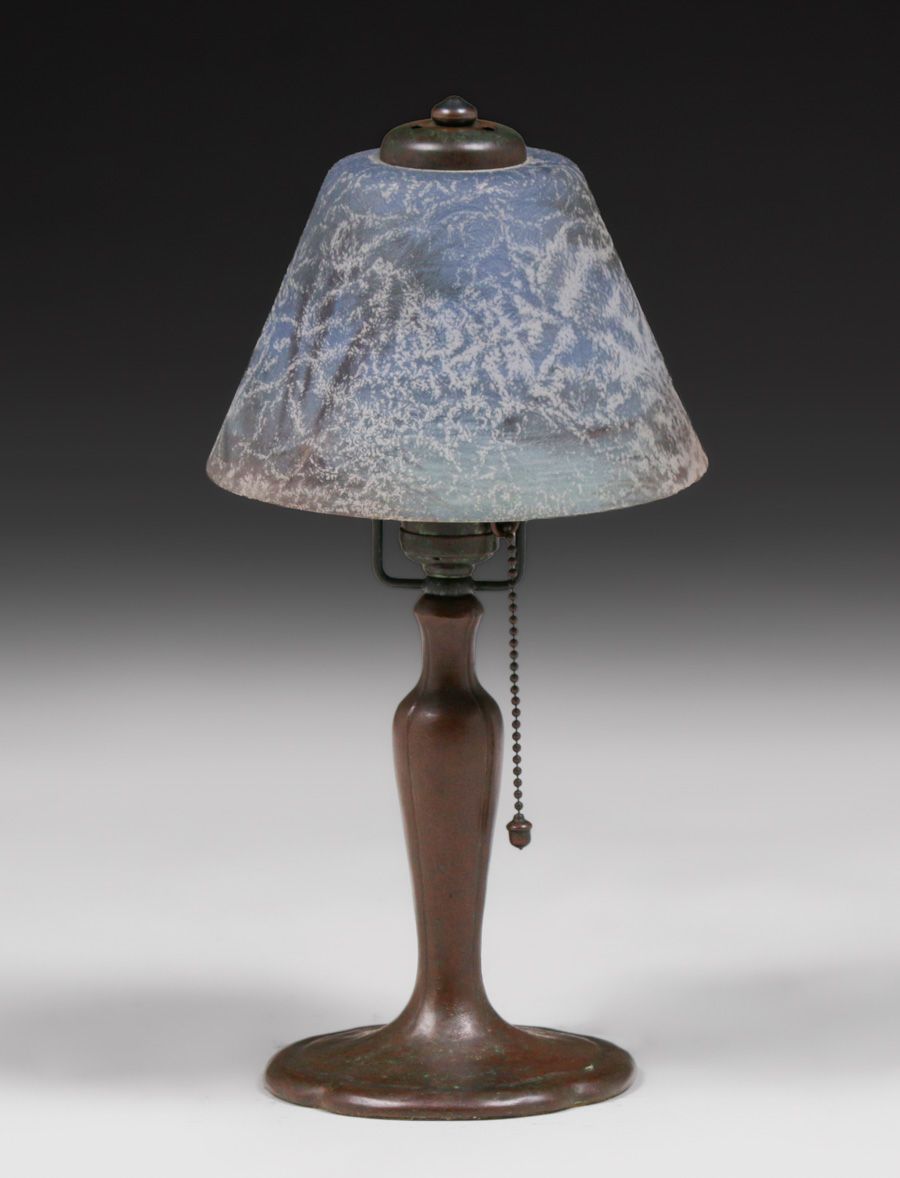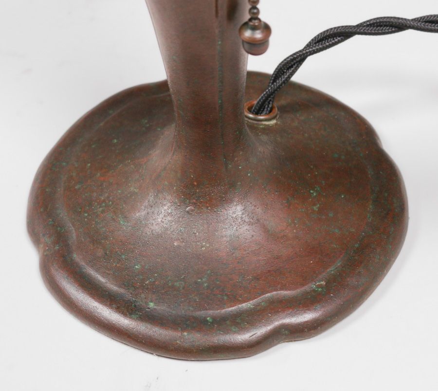 Handel #6558 Reverse-Painted Boudoir Lamp c1910. Signed. Excellent original patina. Original reverse-painted glass in perfect condition. 13.75"h x 6.75"d