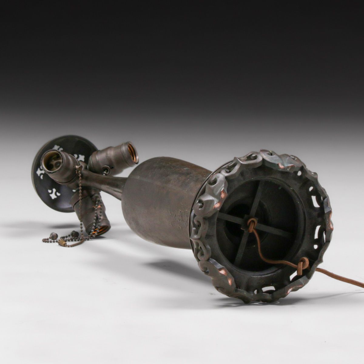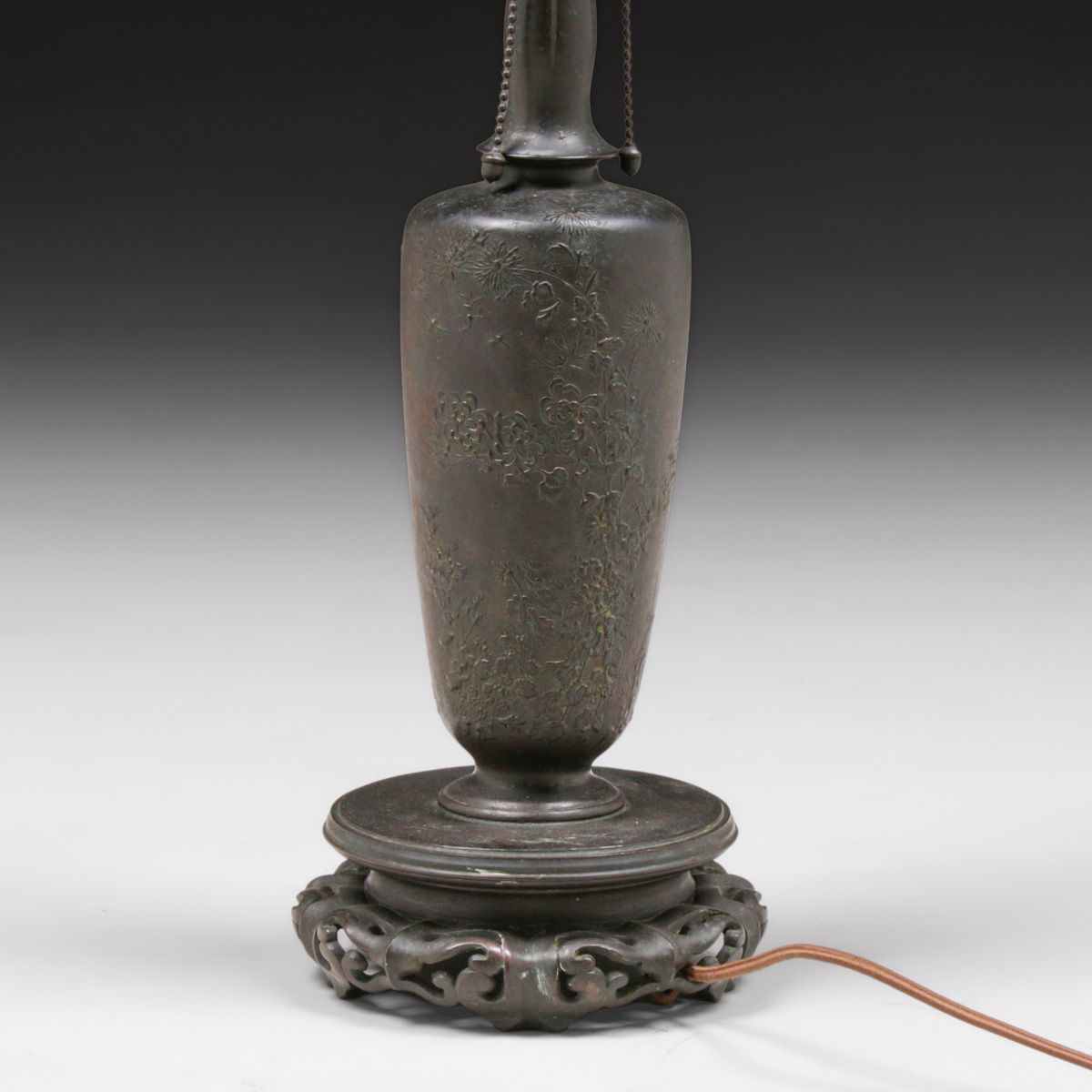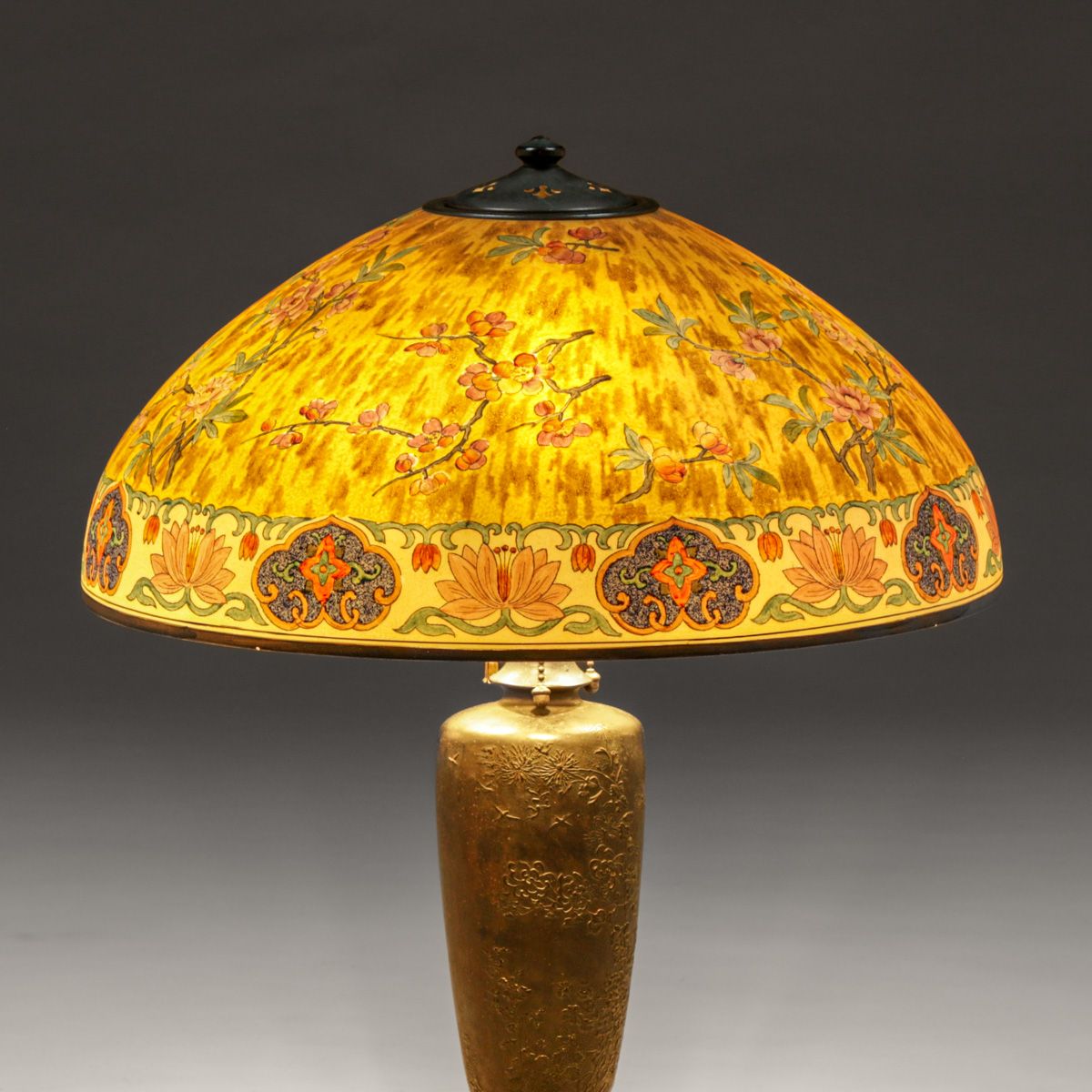- Handel #6631 Cherry Blossom & Lotus Reverse-Painted Lamp c1920s