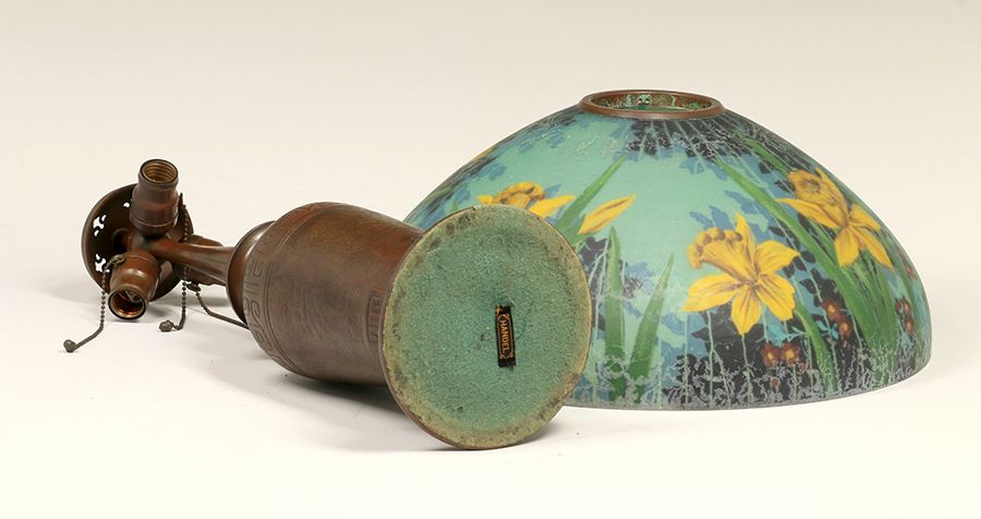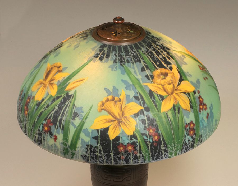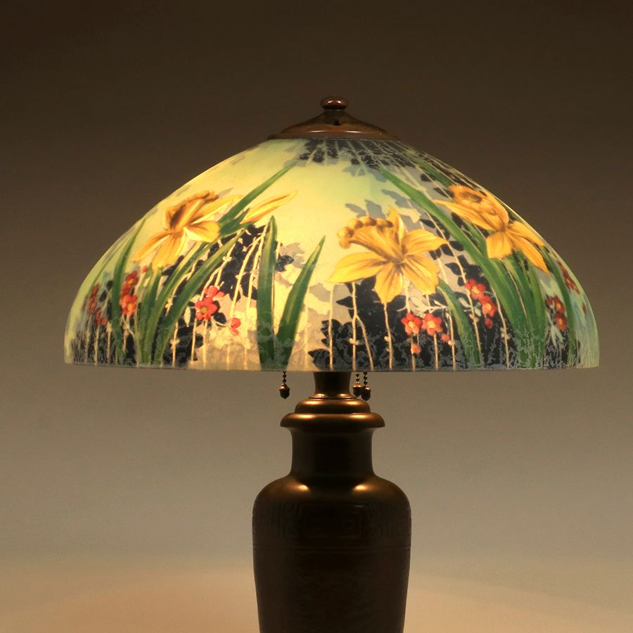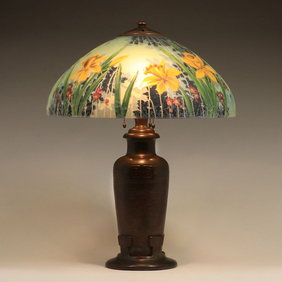 - Handel #7122 Reverse-Painted Yellow Daffodil Lamp c1910