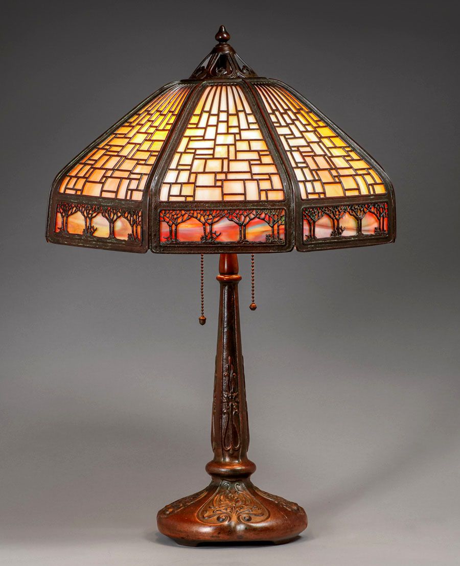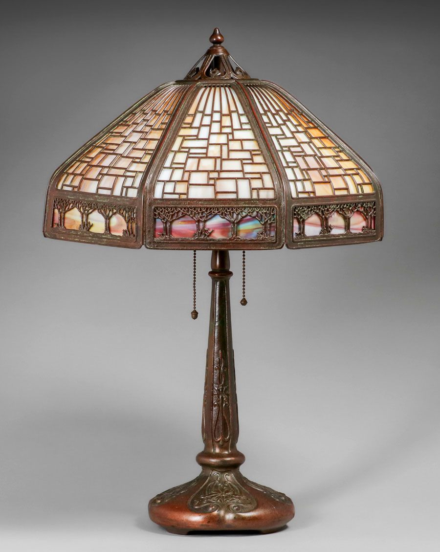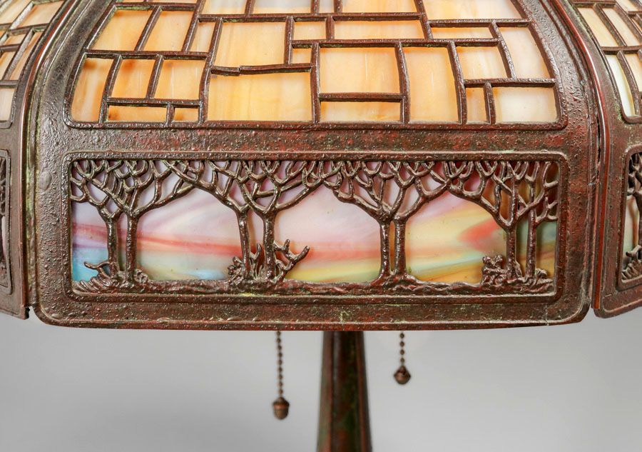 - Handel Arts & Crafts Trees Overlay Lamp c1910