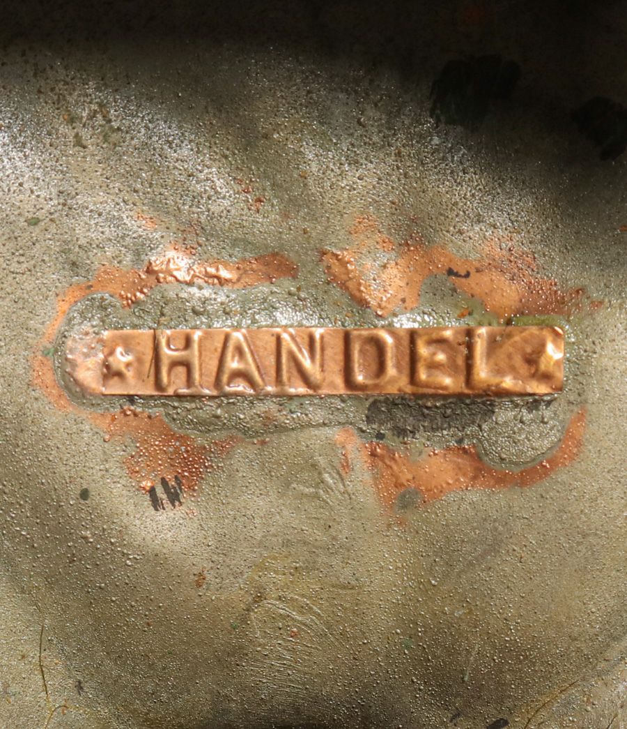 Handel Arts & Crafts Trees Overlay Lamp c1910. Signed. Excellent new patina. Original glass in perfect condition. 25"h x 17.5"d SOLD