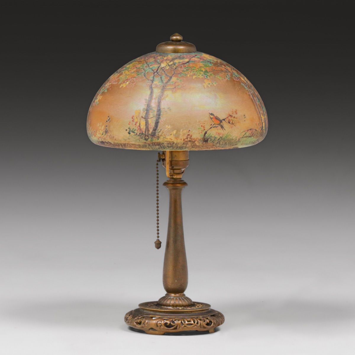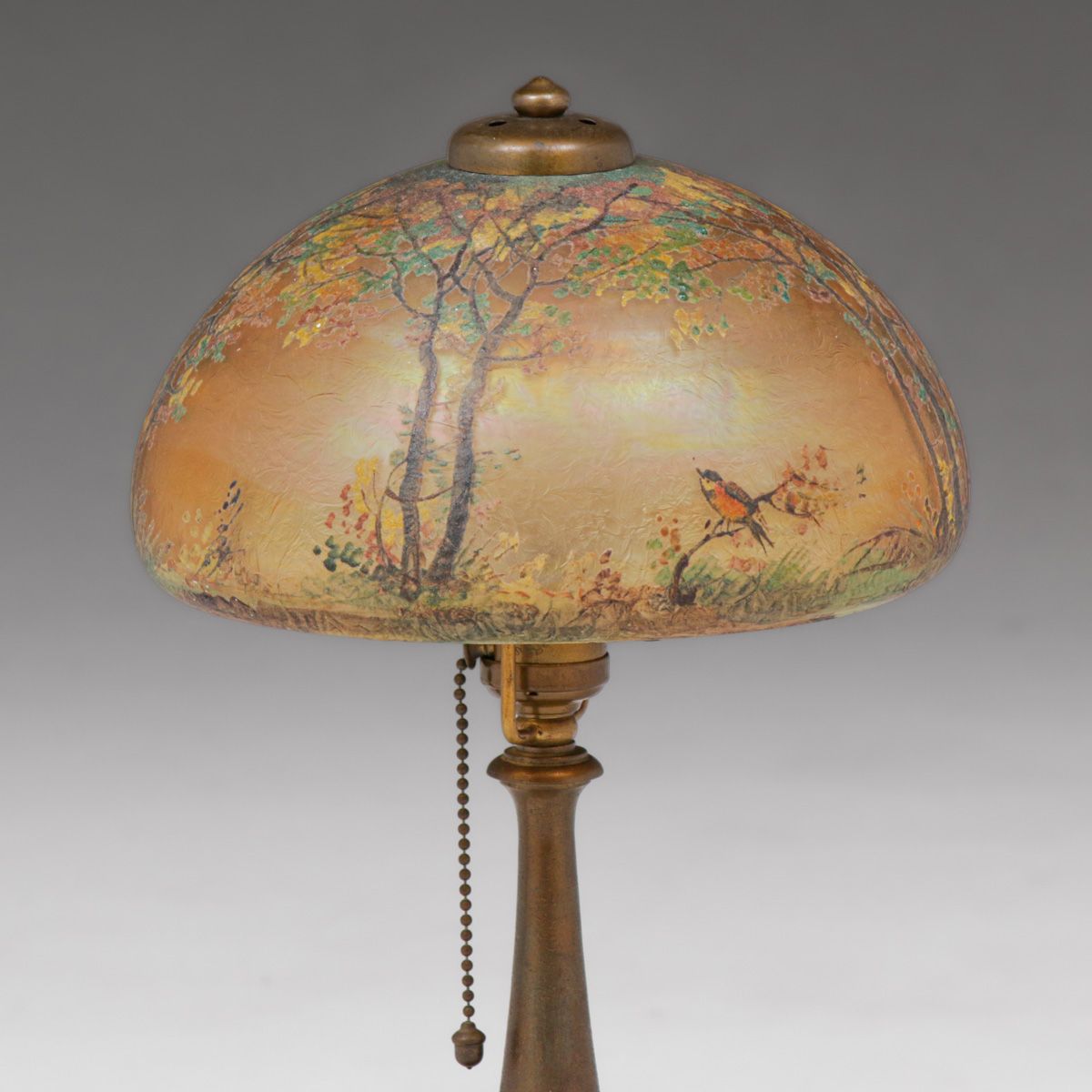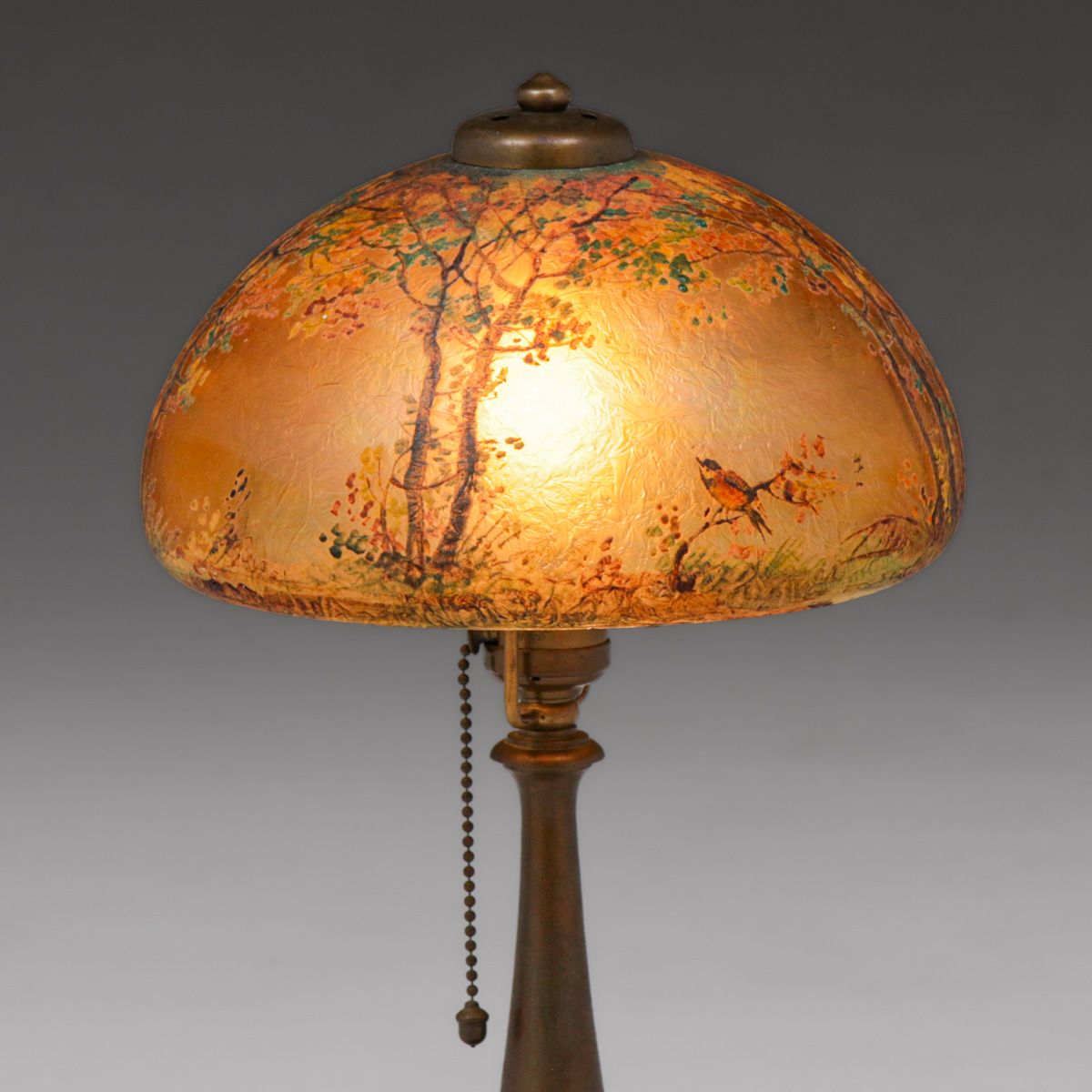 - Handel "Birds in Flight" Obverse-Painted Boudoir Lamp c1920s