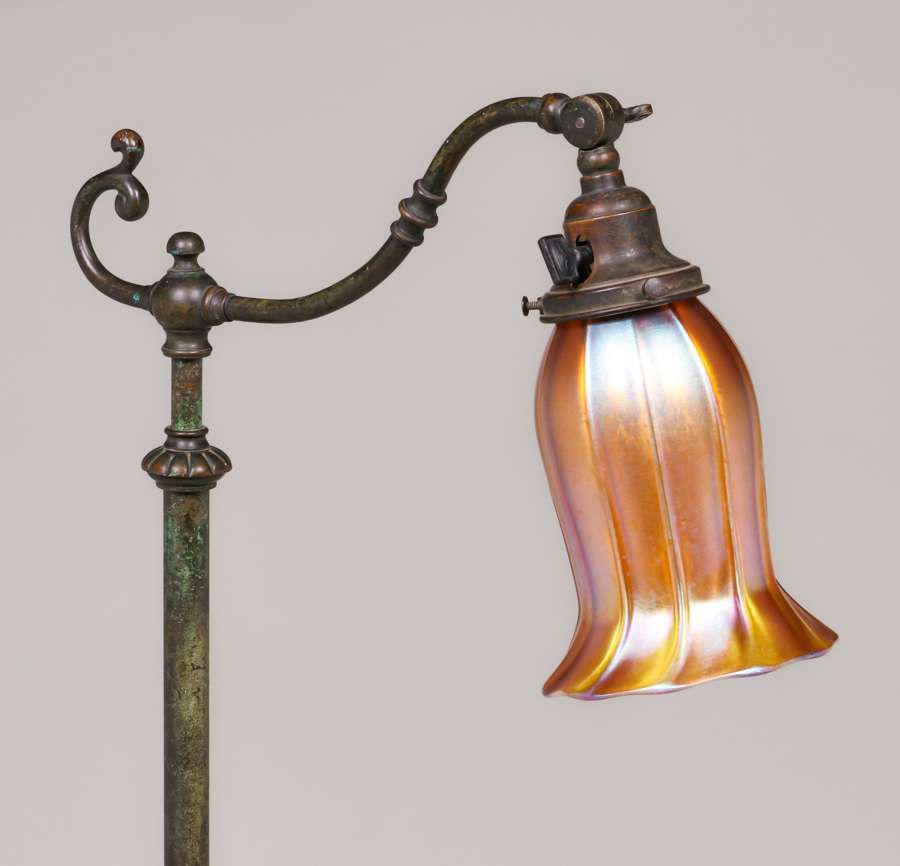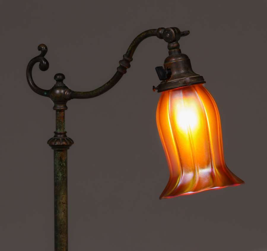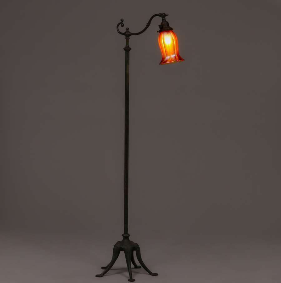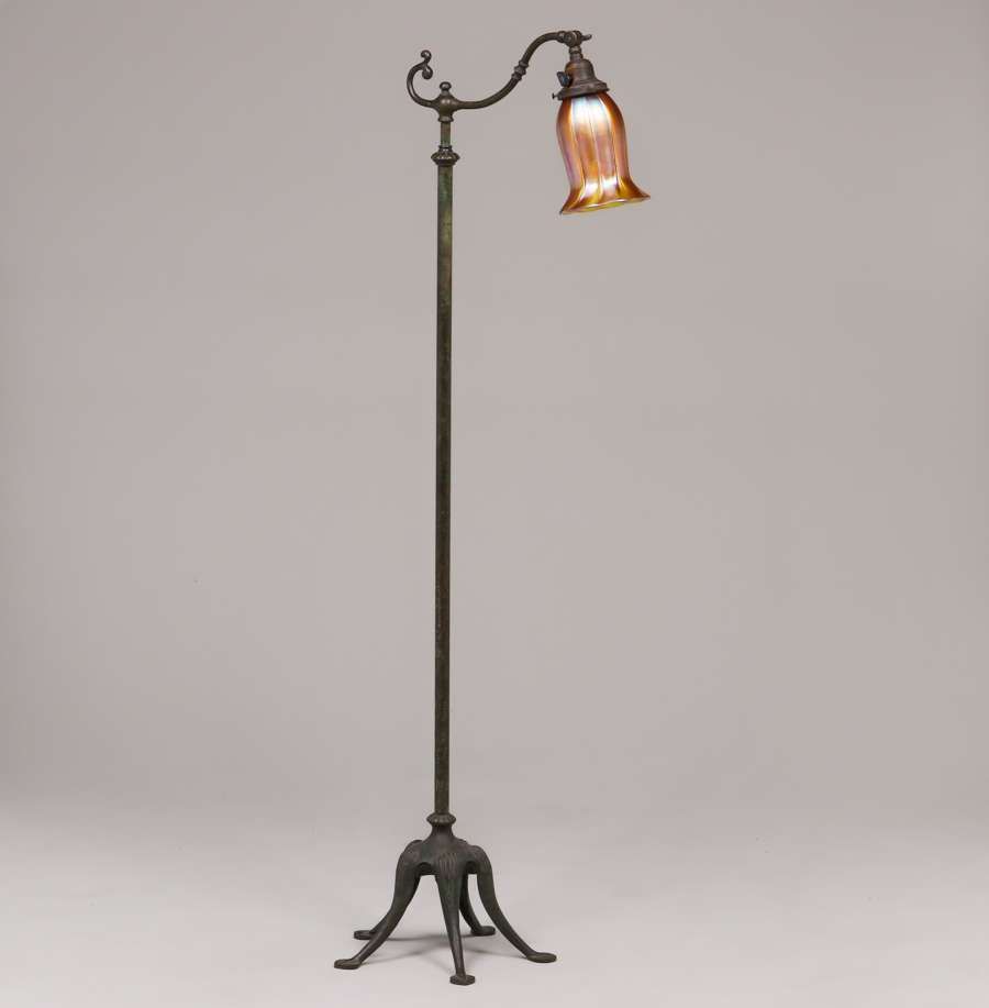 - Handel Bronze Adjustable Floor Lamp Quezal Shade c1910s