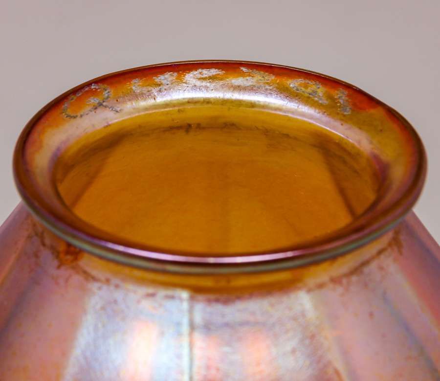 Handel Bronze Adjustable Floor Lamp Quezal Shade c1910s. Shade signed Quezal. Base unsigned. Excellent original patina. 63" max height. 47" min height x 12"d base SOLD