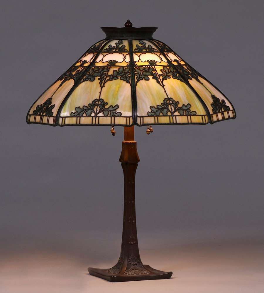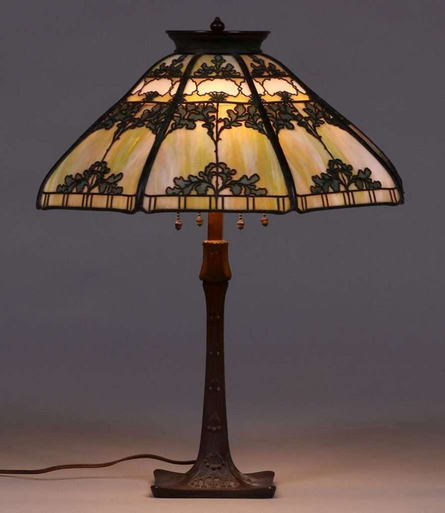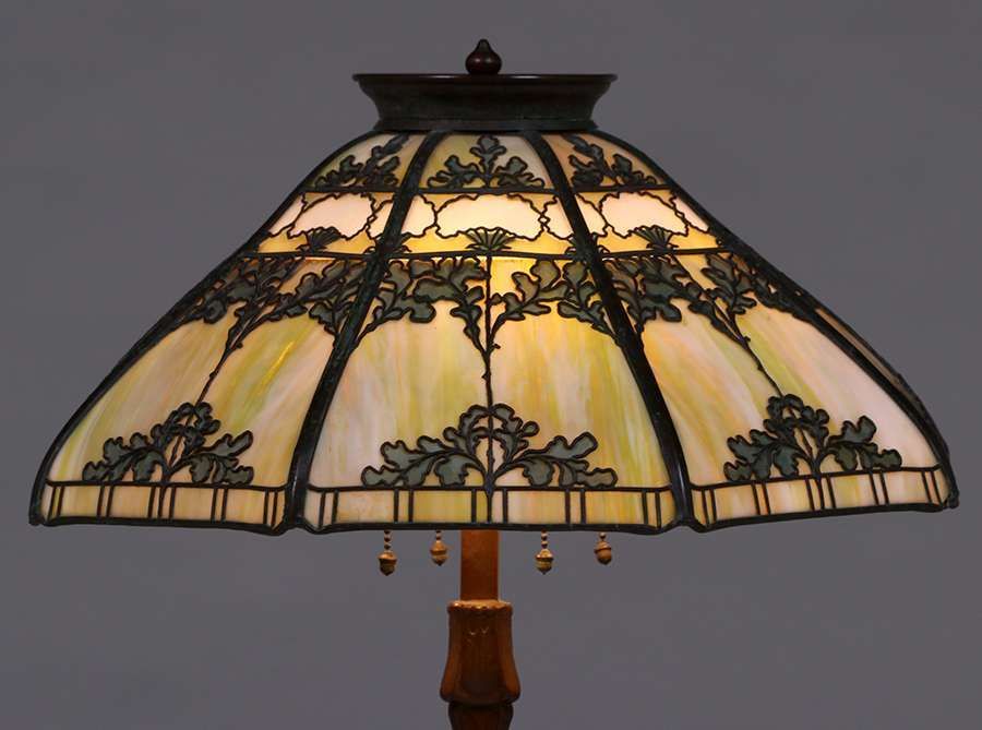 Handel Cotton-Bale Overlay Lamp c1910. Signed. Perfect condition. 25″h x 19.5″d SOLD