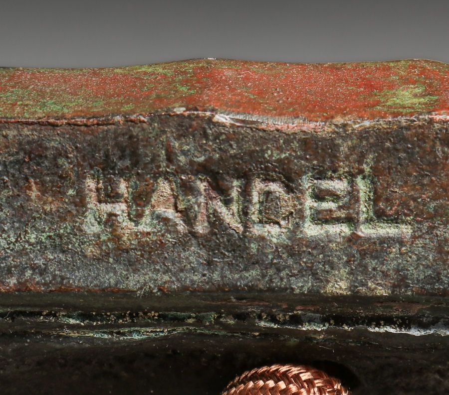 Handel Desk Lamp c1910. Signed. Excellent new patina. 14.25"h x 12"w x 8" depth SOLD