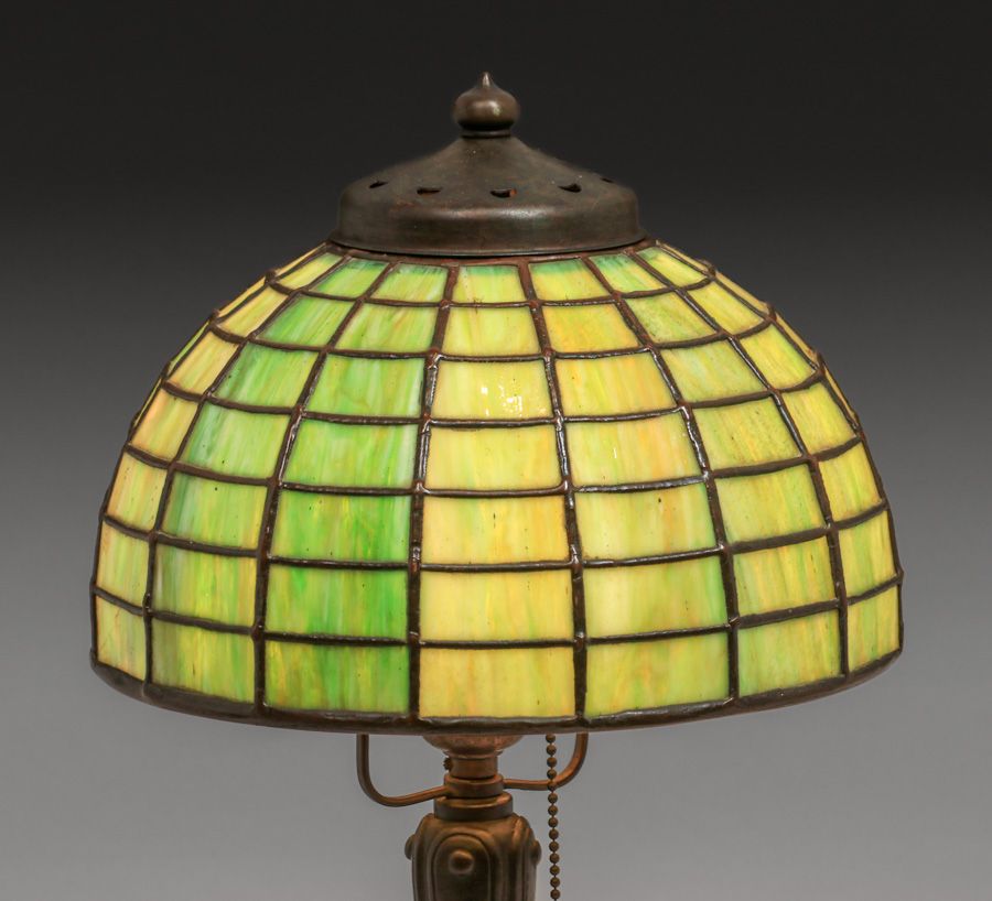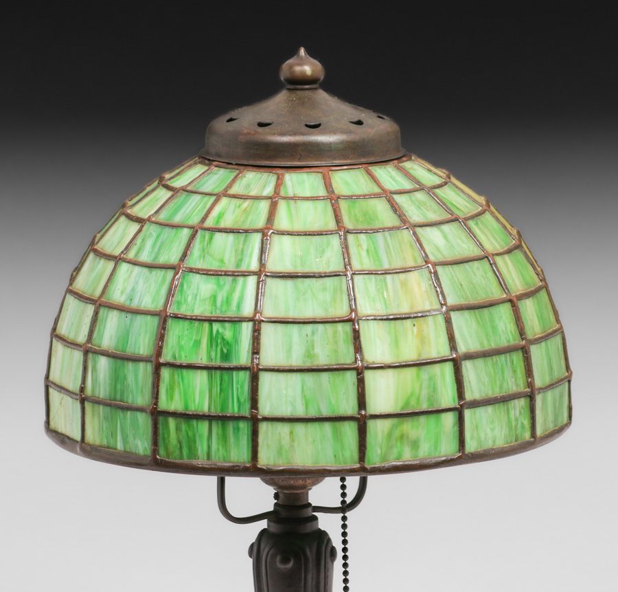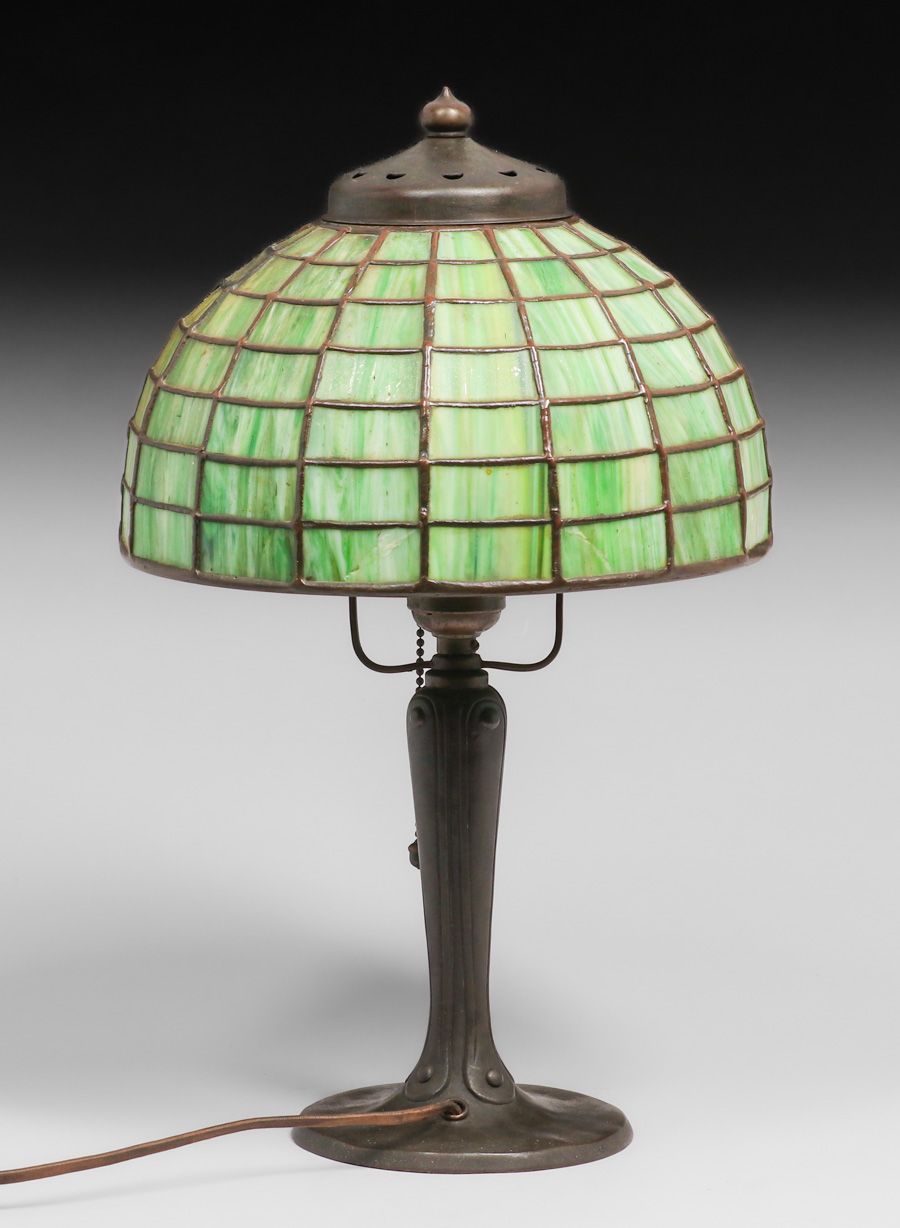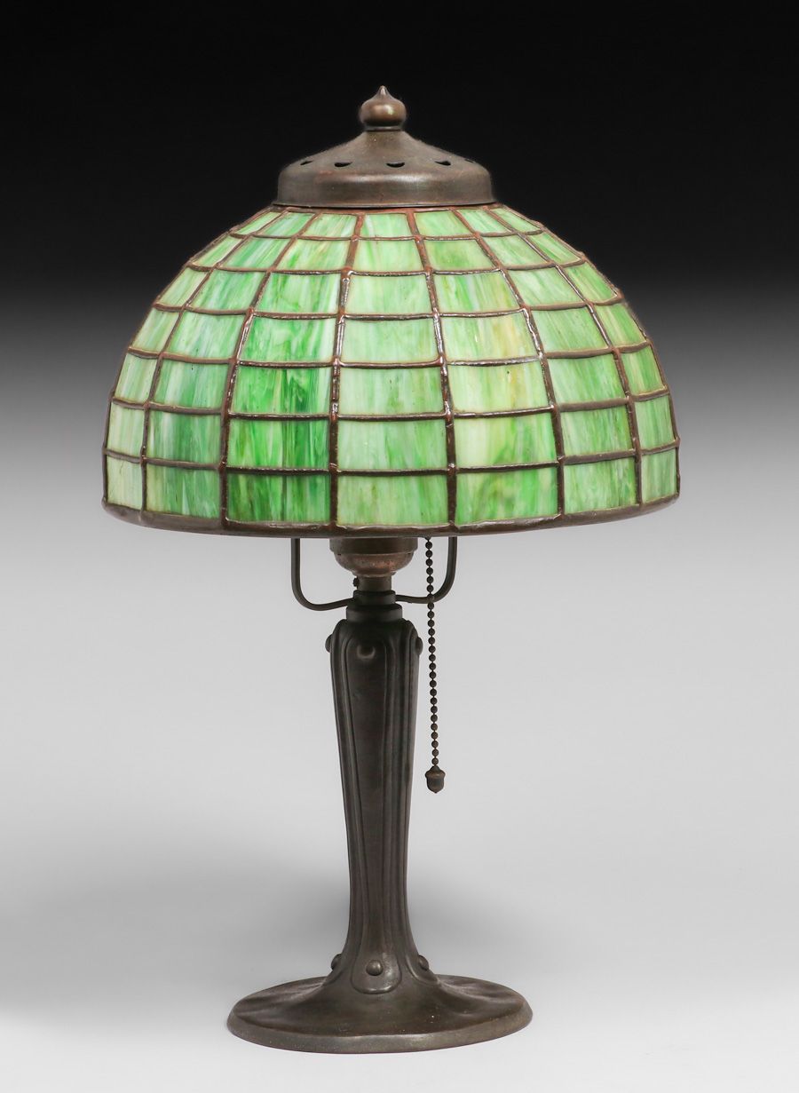 - Handel Green Leaded Glass Boudoir Lamp c1910