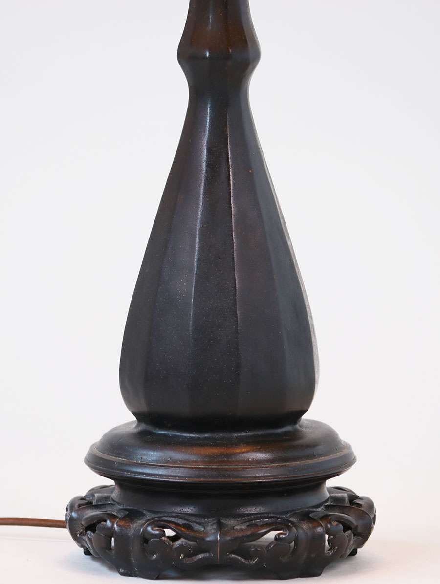 Handel reverse-painted maple leaf lamp. Signed. Excellent condition. Glass shade in perfect condition. 25"h x 18"d SOLD