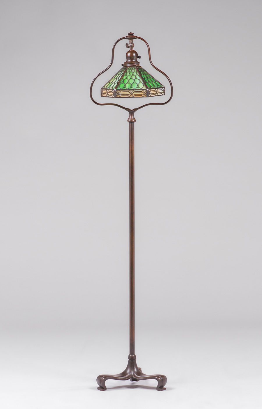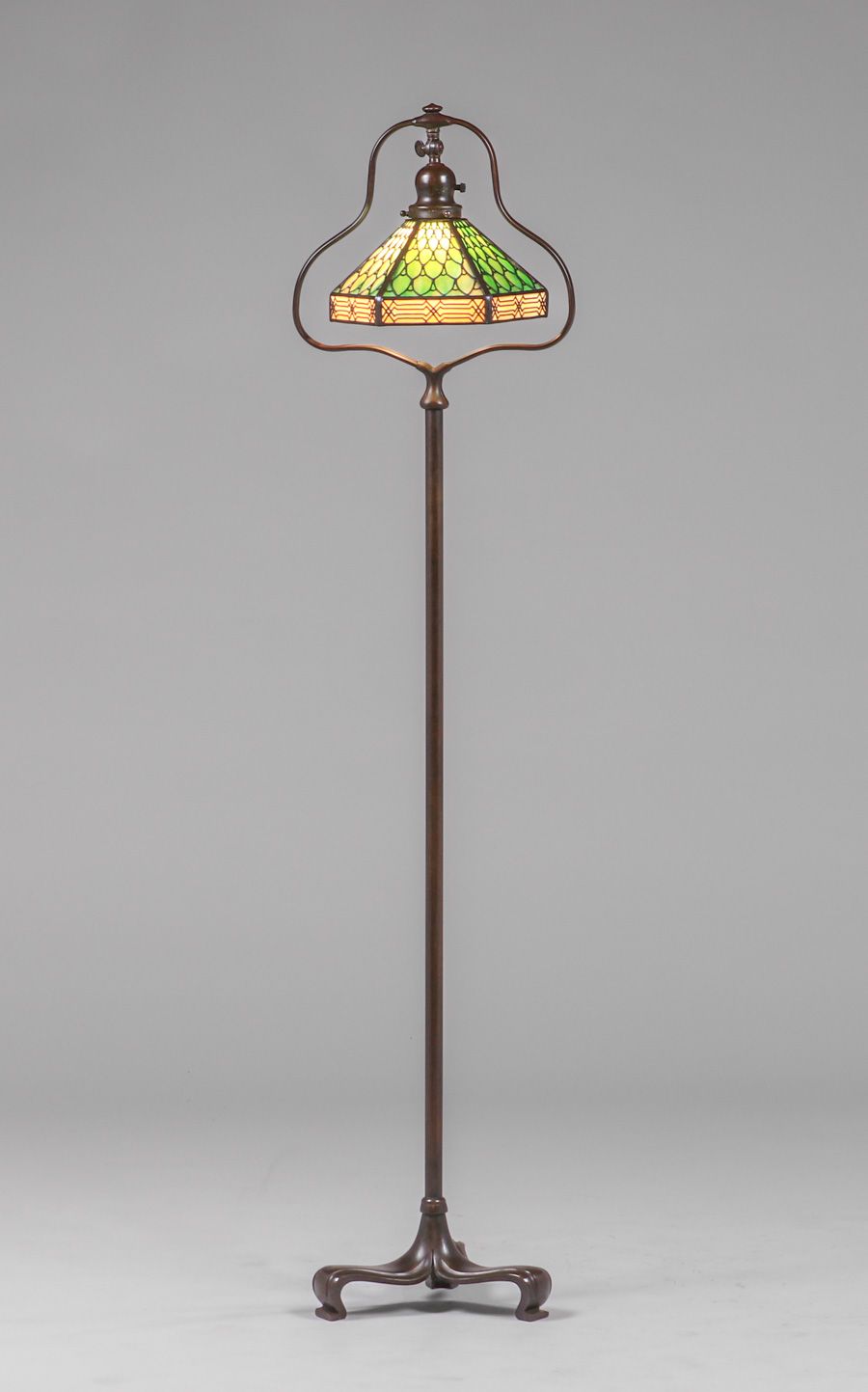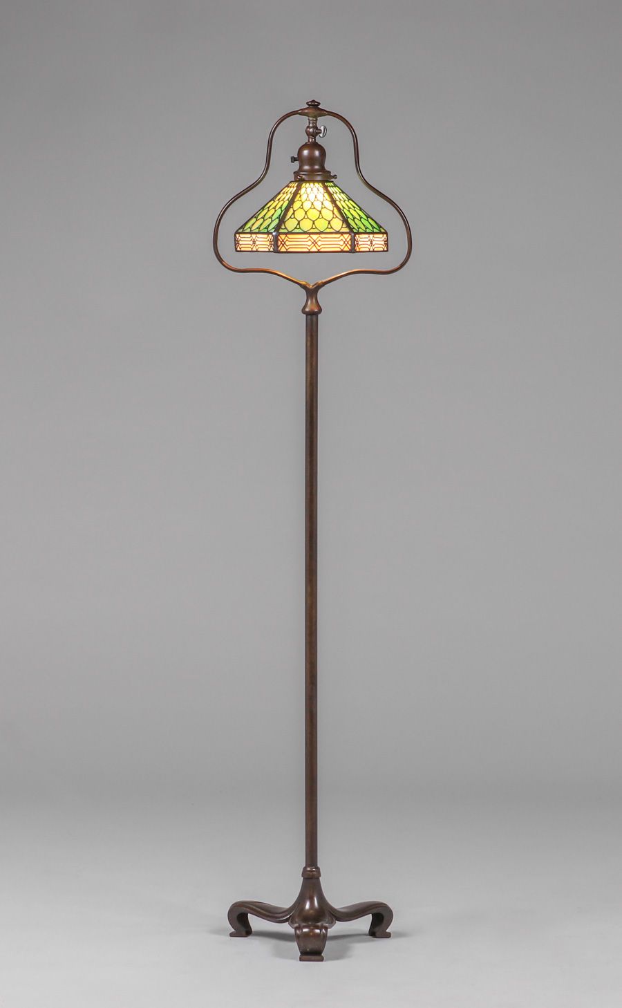 Handel Overlay Floor Lamp c1910. Signed. Color added to original patina. Original glass in perfect condition. 59”h x 13”w SOLD