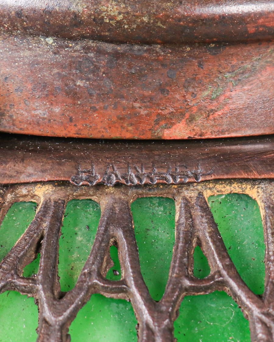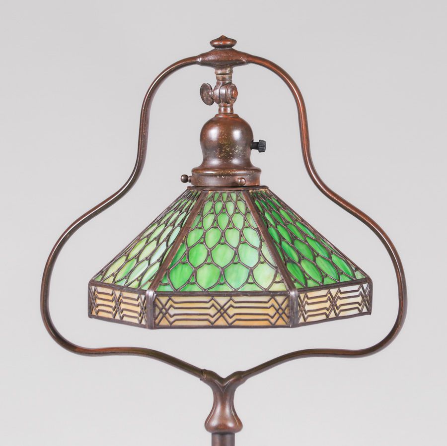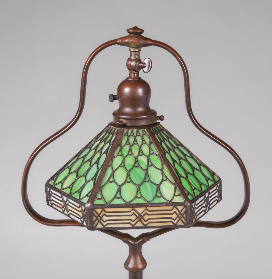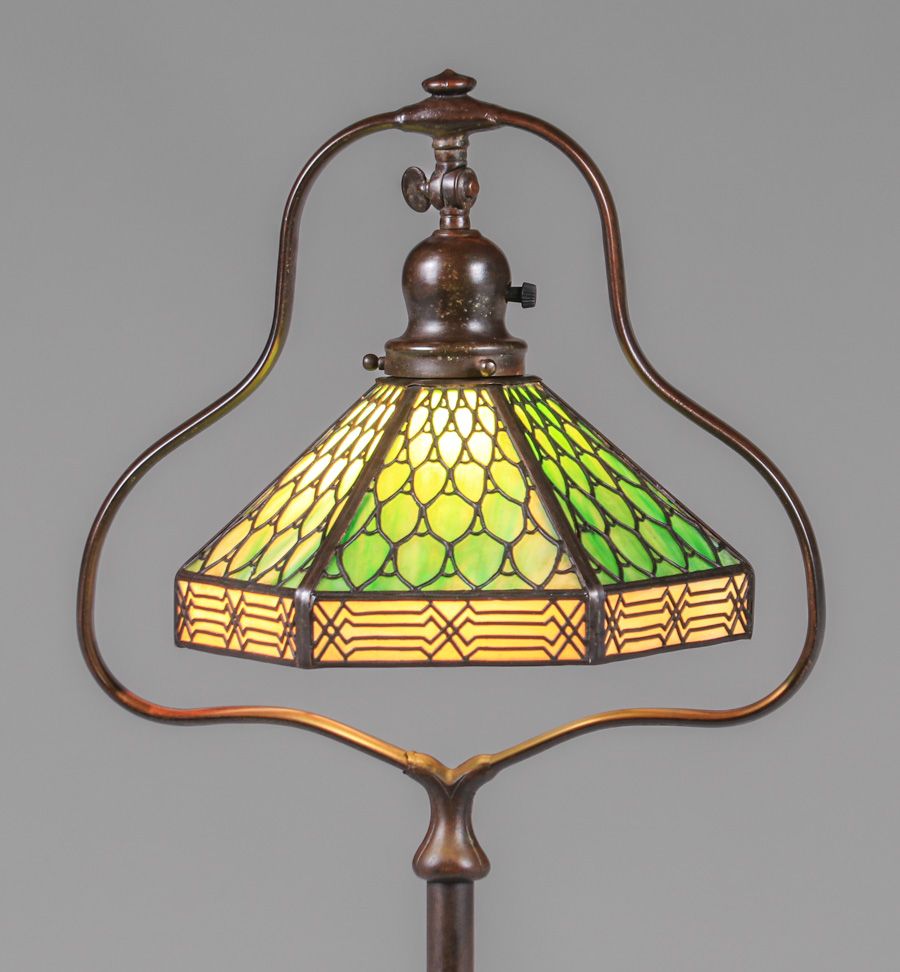 Handel Overlay Floor Lamp c1910. Signed. Color added to original patina. Original glass in perfect condition. 59”h x 13”w SOLD