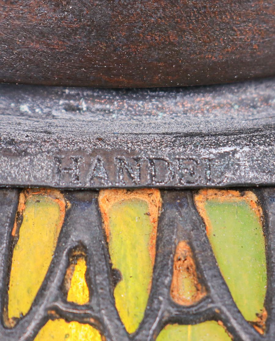 Handel Overlay Floor Lamp c1910s. Signed. Excellent new patina. Original glass in perfect condition. 56"h x 14"w