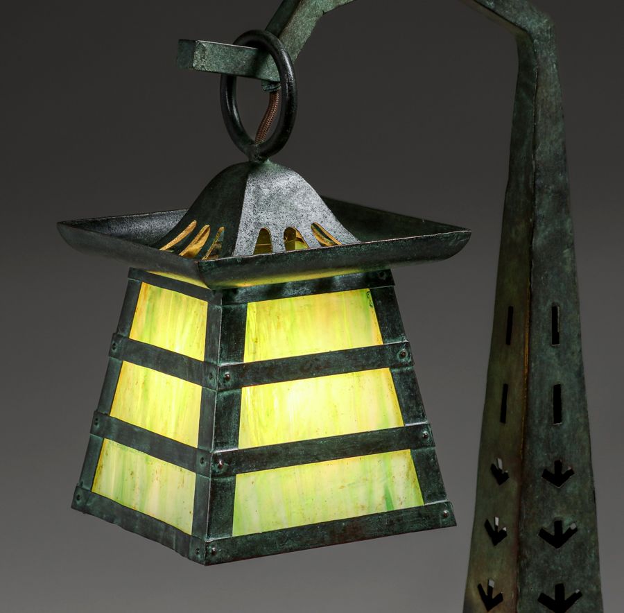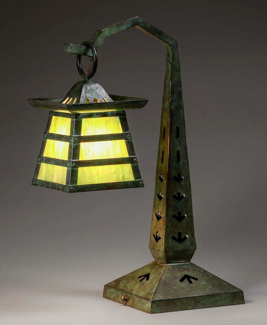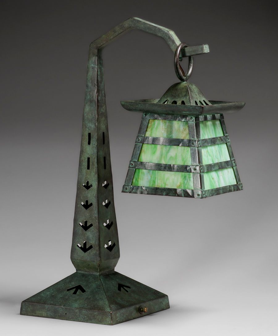 - Handel Slag Glass Bronze Cutout Desk Lamp c1910