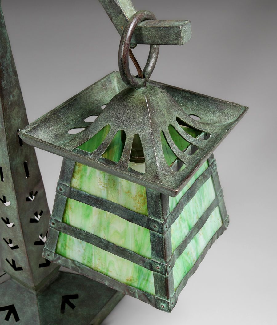 Handel Slag Glass Bronze Cutout Desk Lamp c1910. Signed. Color added to original patina. 21.5h x 14.5 depth x 8 x 8 base SOLD