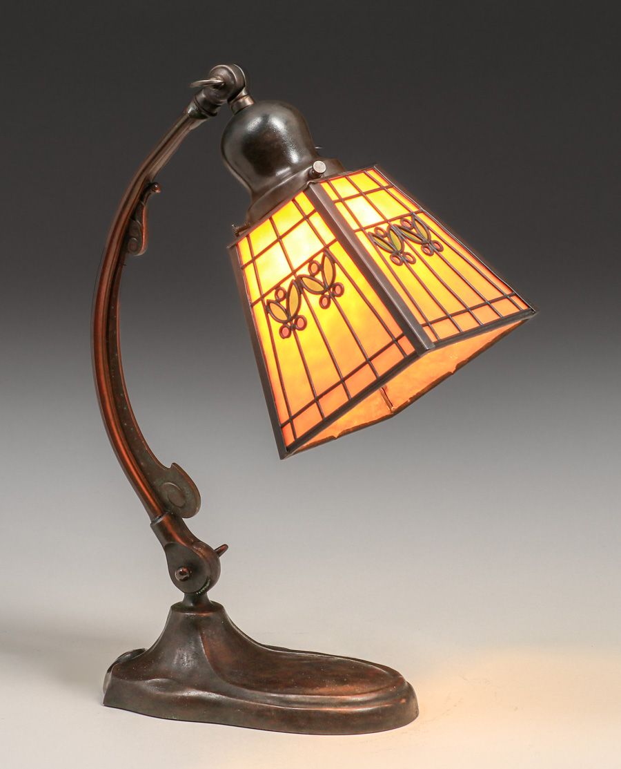 - Handel Slag Glass Overlay Desk Lamp c1910