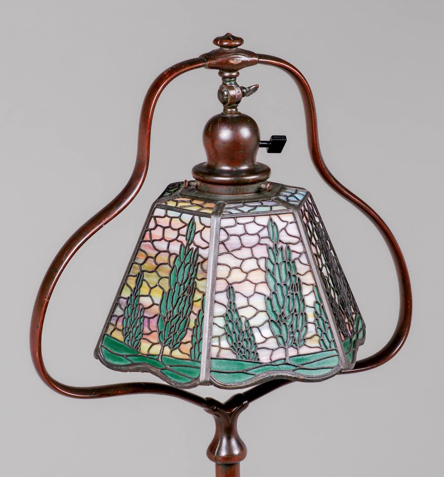 - Handel Sunset Landscape Overlay Floor Lamp c1910