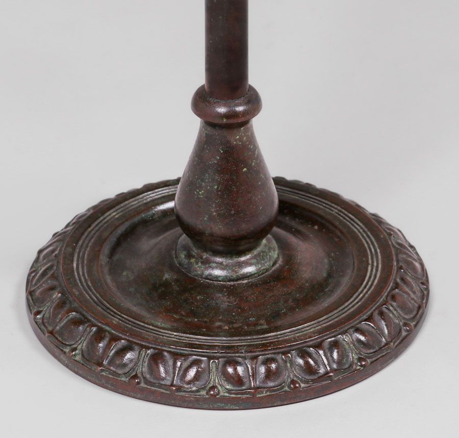 Handel Sunset Landscape Overlay Floor Lamp c1910. Signed. Excellent original patina. Original glass in perfect condition. 52.5"h x 13"w. Shade 10"d SOLD