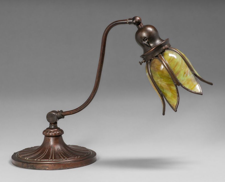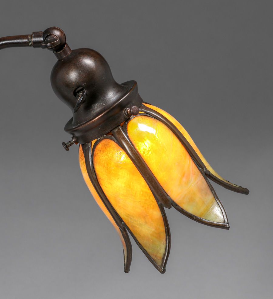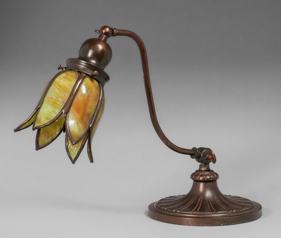 Handel Tulip Desk Lamp c1910. Signed. Excellent new patina. Original glass in perfect condition. 11.75”h x 17”w x 7”d SOLD