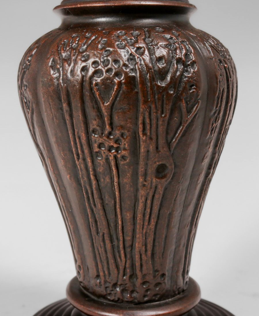Handel Tulip Overlay Boudoir Lamp c1910. Signed. Excellent new patina. Original glass in perfect condition. 14"h x 8"d SOLD