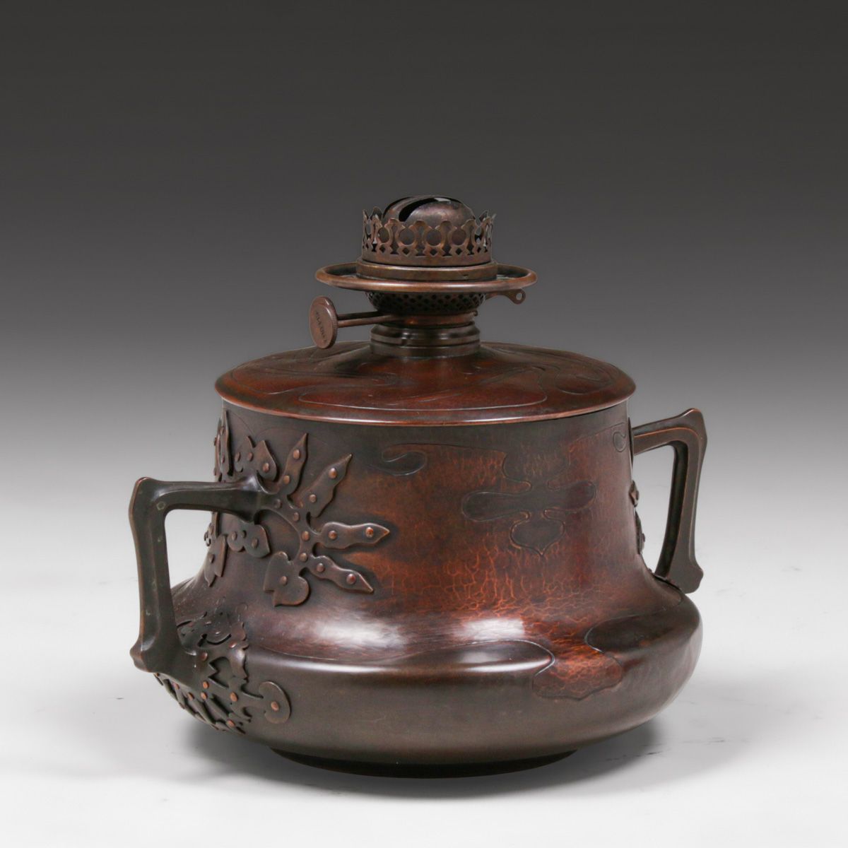 - Hans Eduard von Berlepsche-Valendas - Munich, Germany Secessionist Hammered Copper & Brass Kerosene Lamp c1898-1900