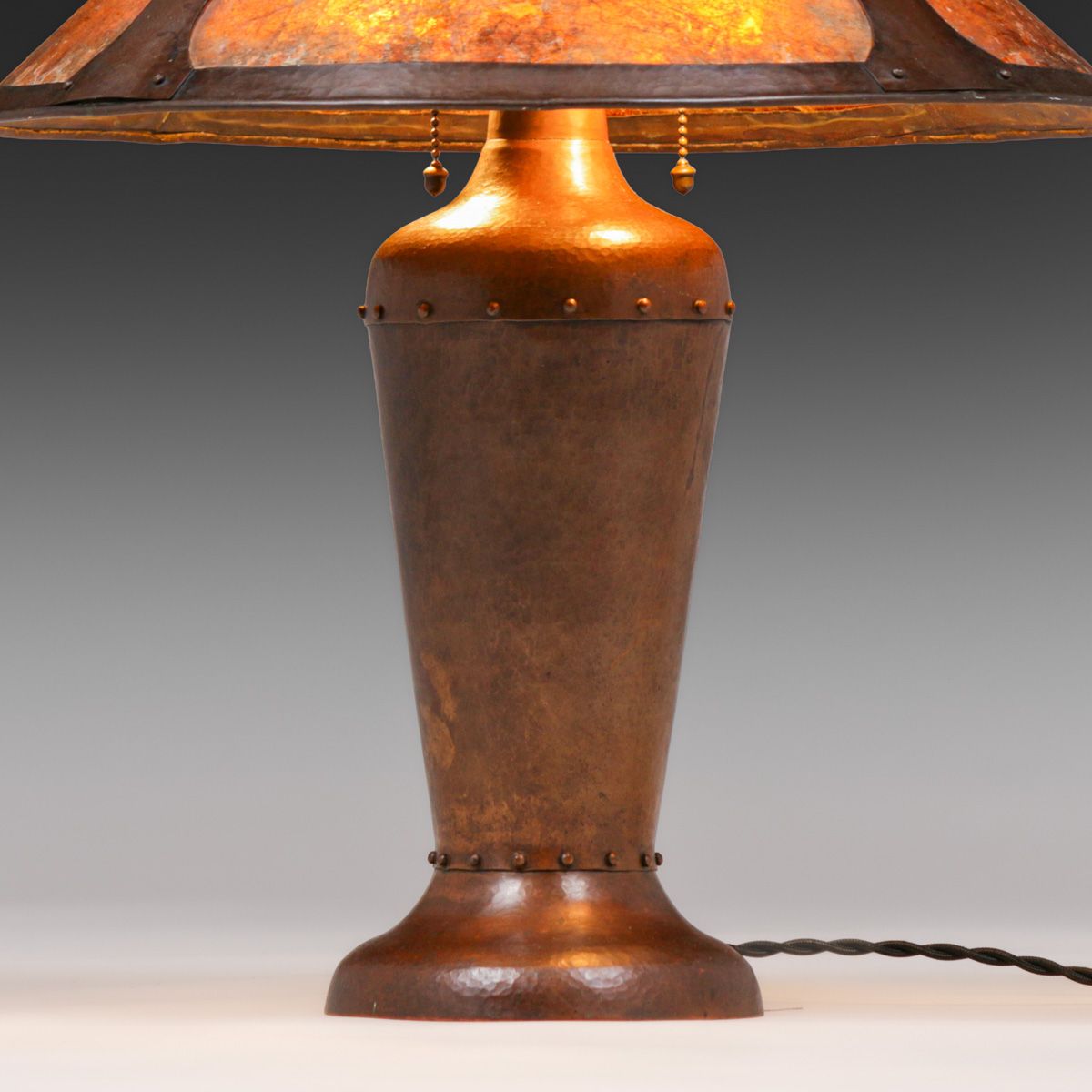 - John L. Willocx (not Willcox) Hammered Copper & Mica Riveted Lamp c1920s