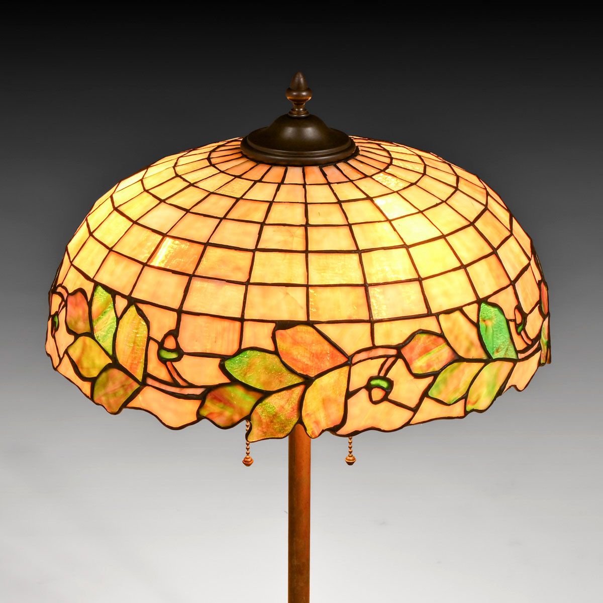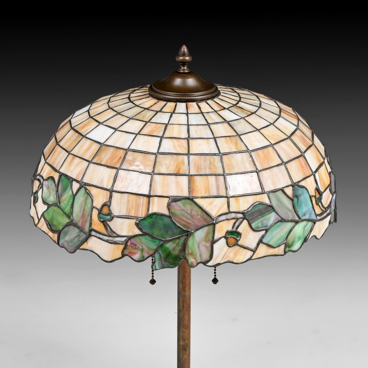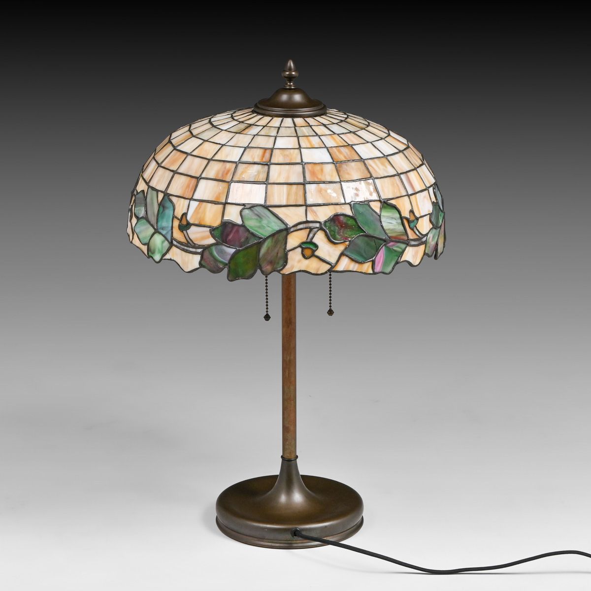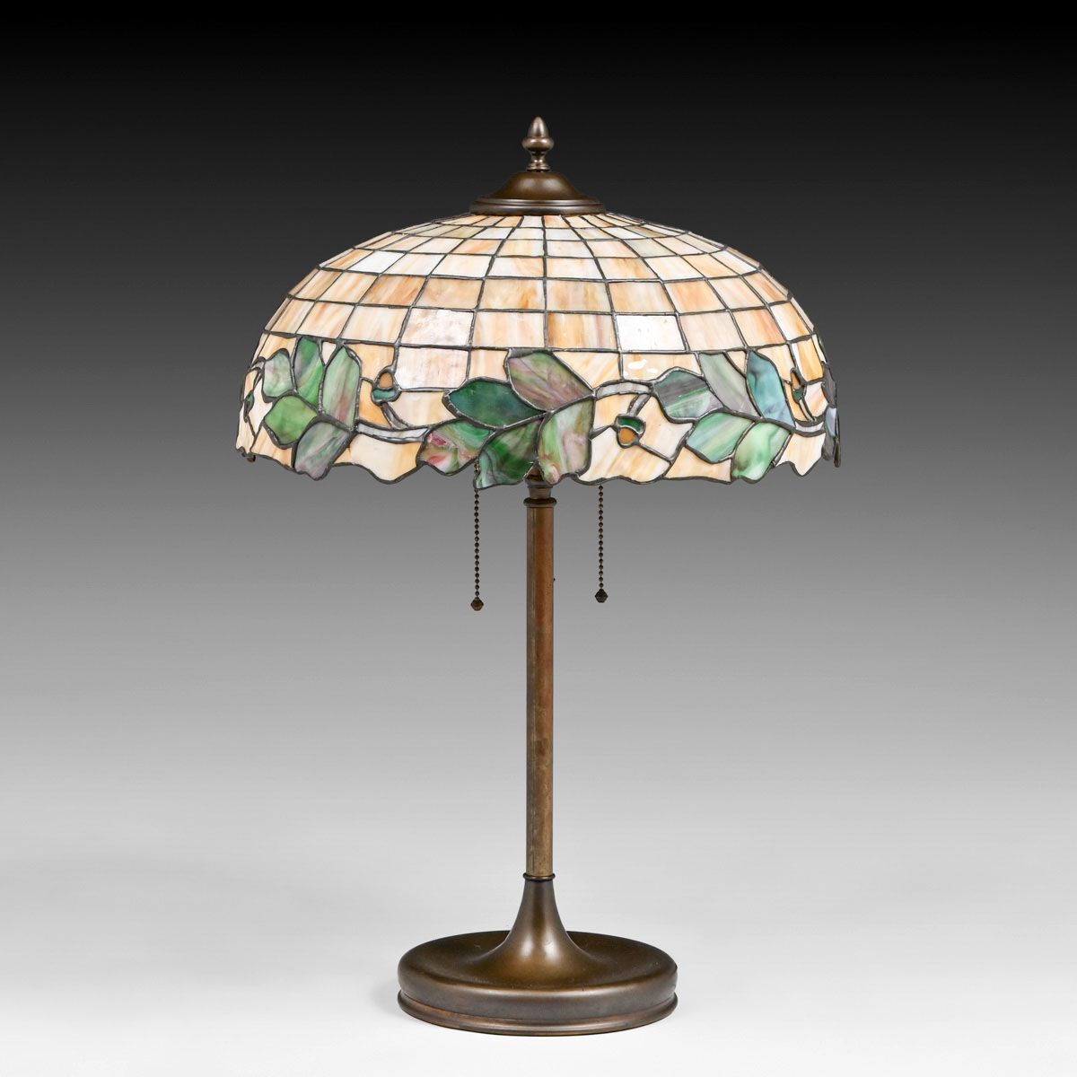 - Lamb Brothers & Greene - Indiana Oak Leaf & Acorn Leaded Glass Lamp c1910