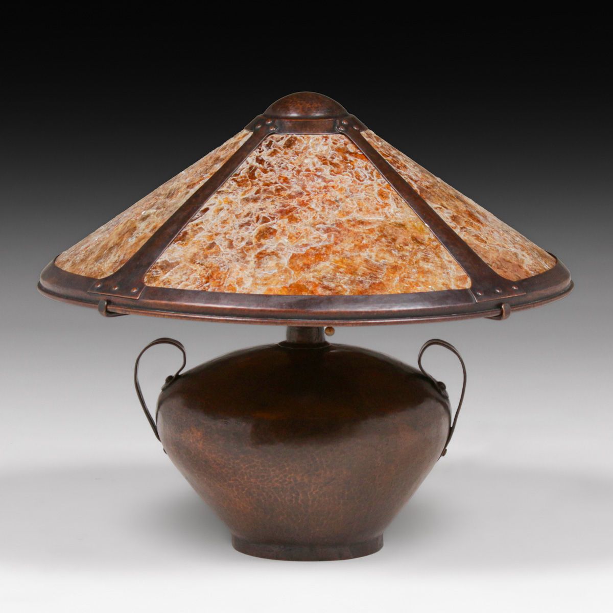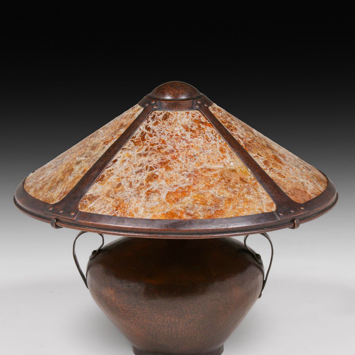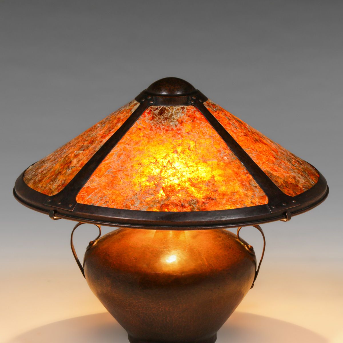 - Lillian Palmer - August Tiesselinck Hammered Copper & Mica Lamp c1915