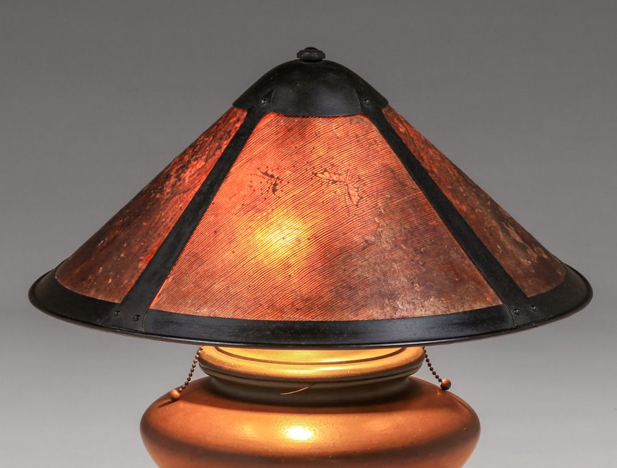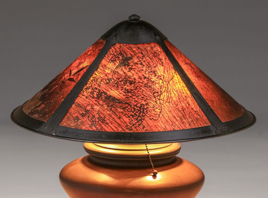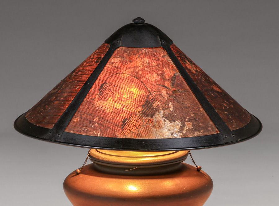 - Lillian Palmer Copper & Stenciled Mica Lamp c1910s