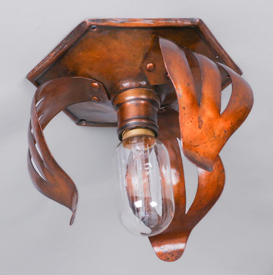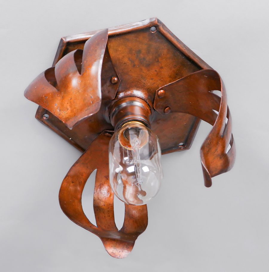 - Lillian Palmer Hammered Copper Cutout Ceiling Light c1909