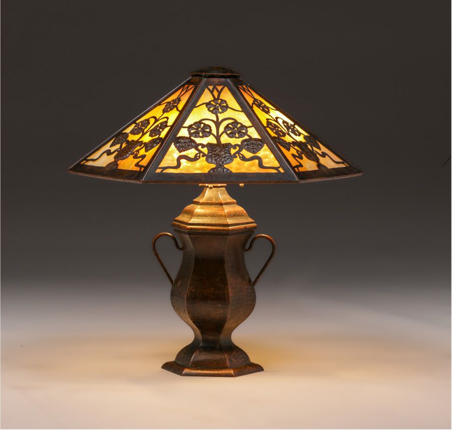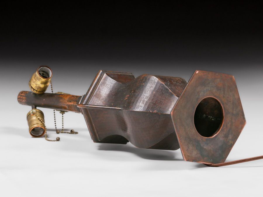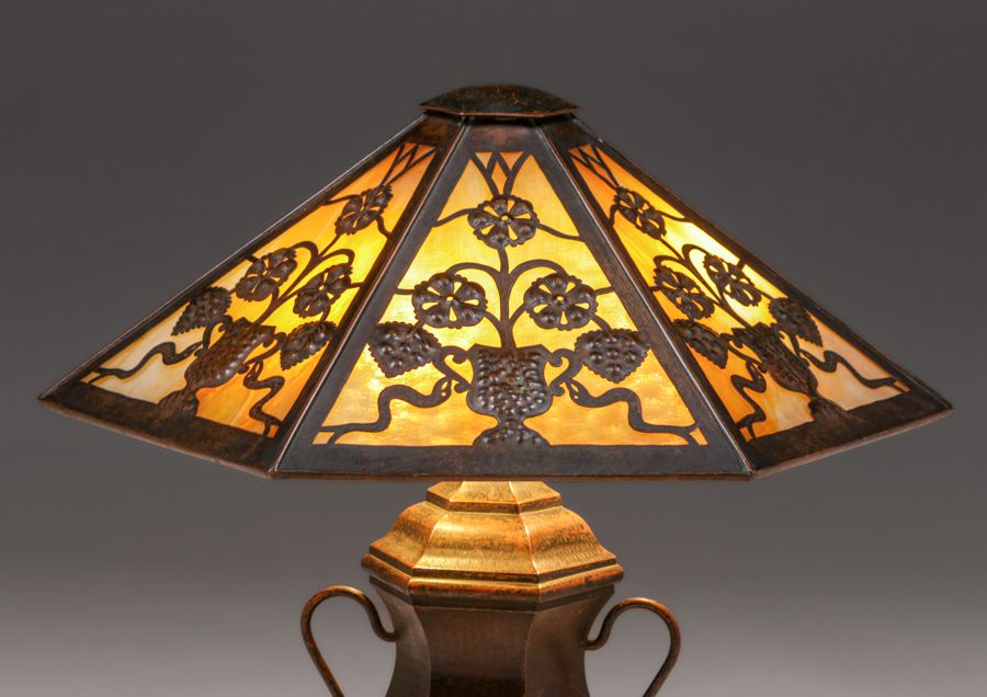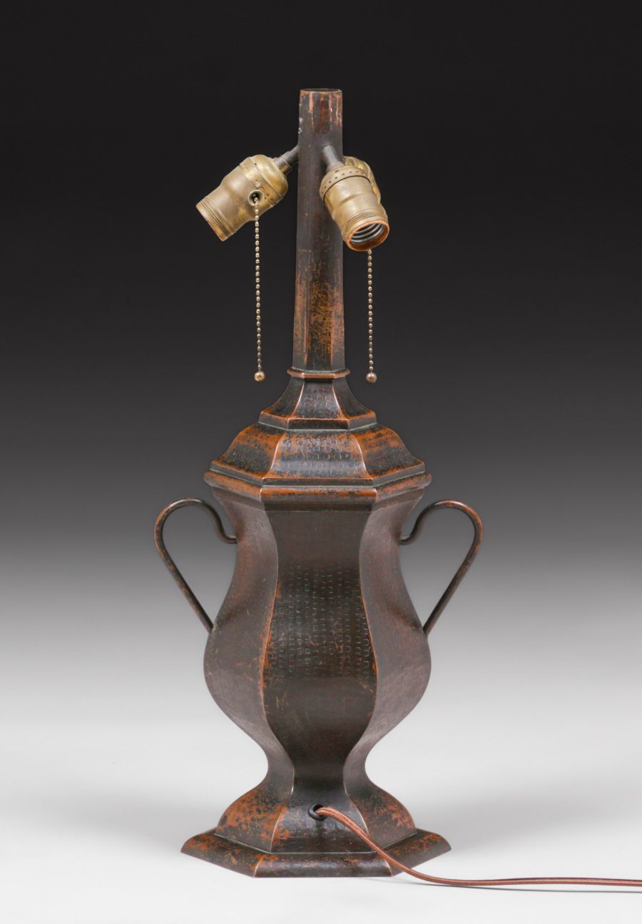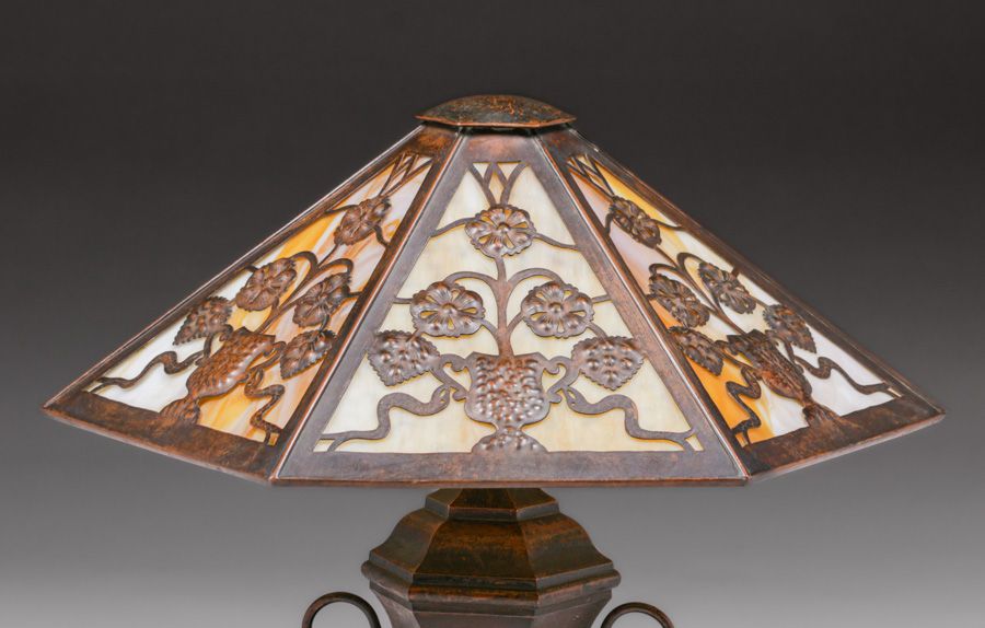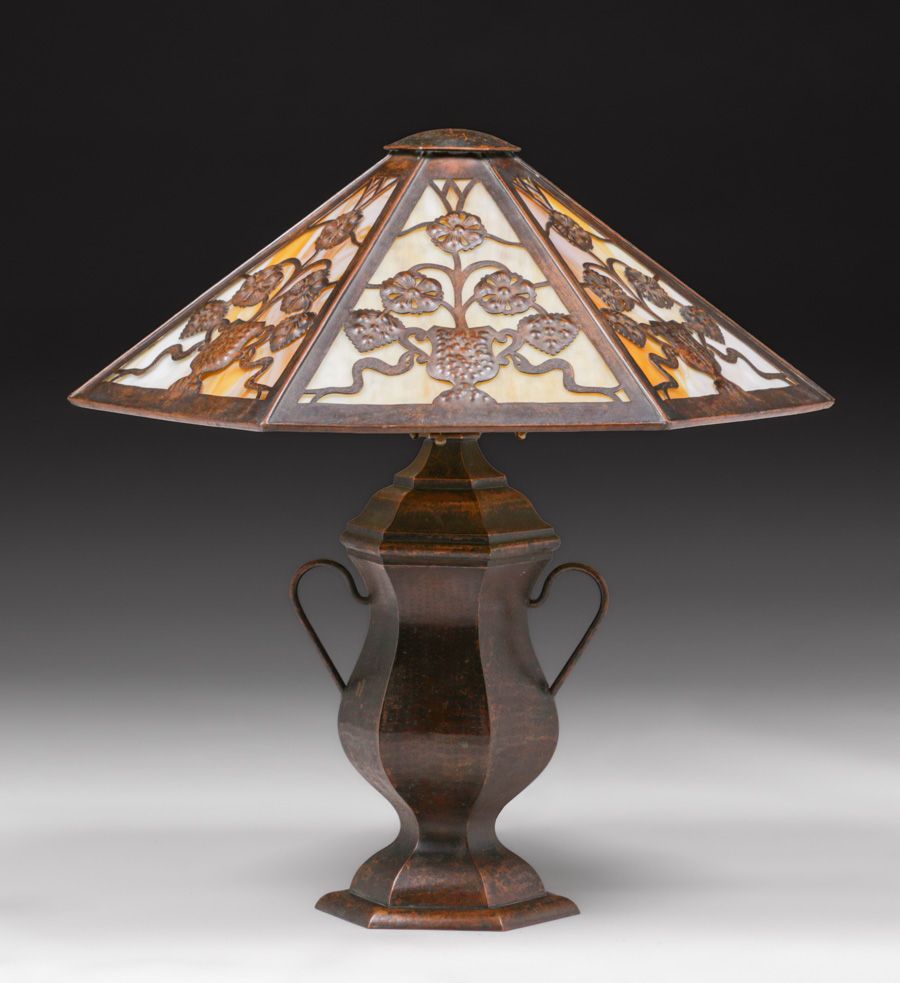 - Limbert Hammered Copper & Slag Glass Lamp c.1910