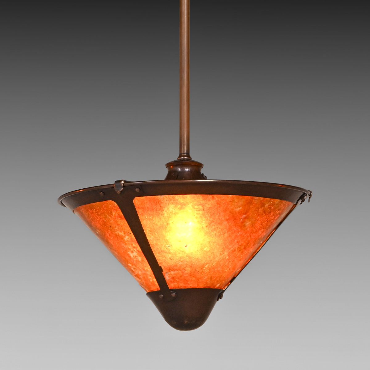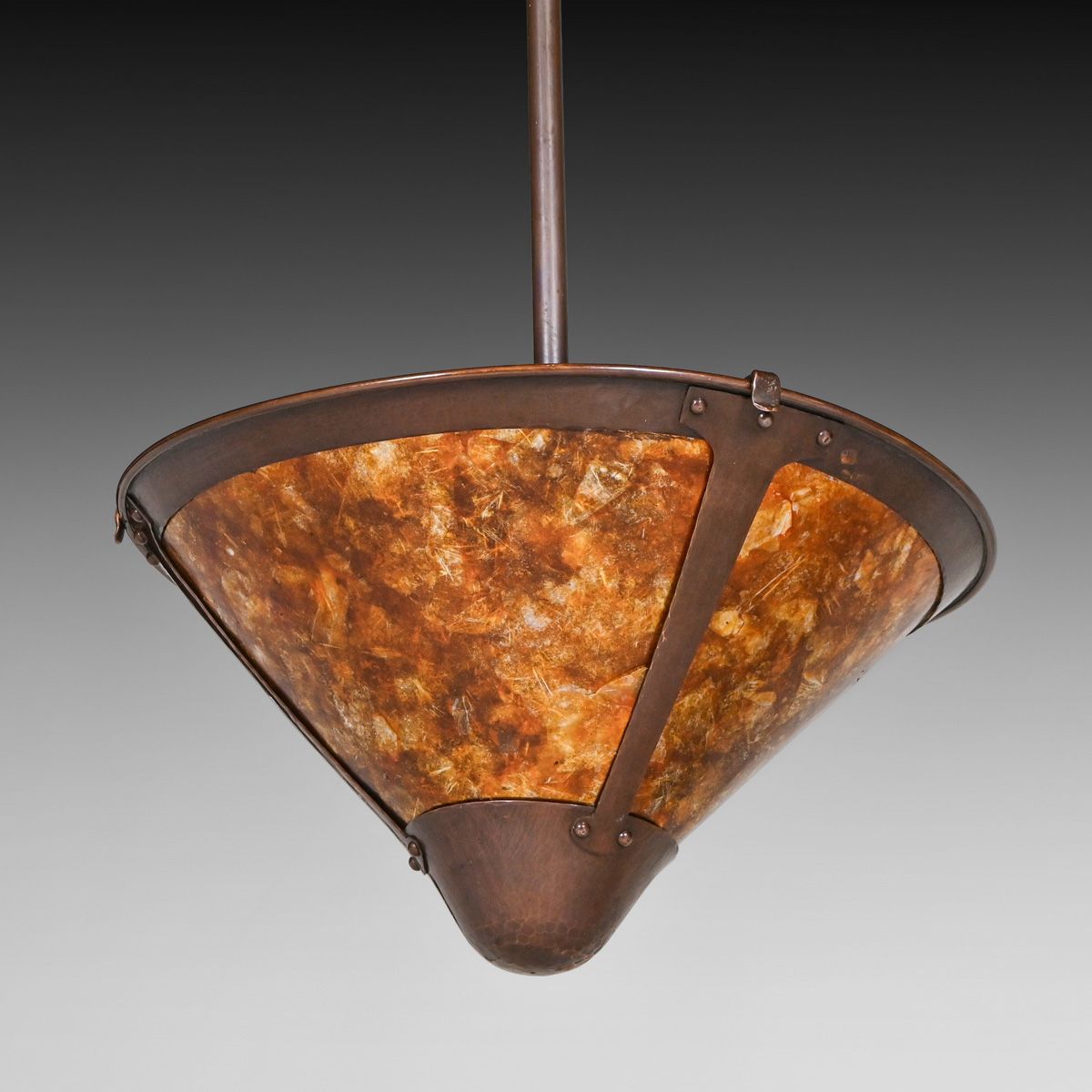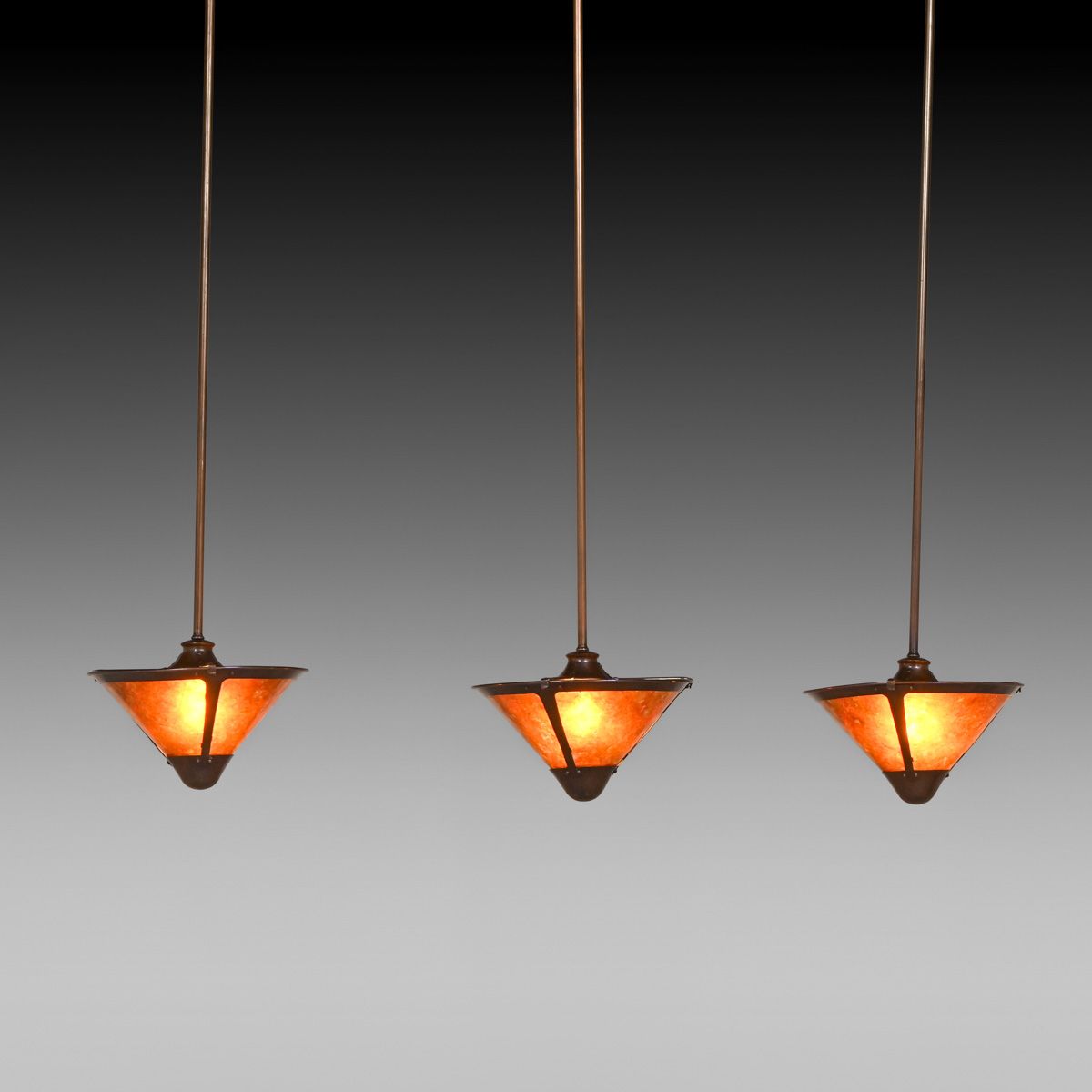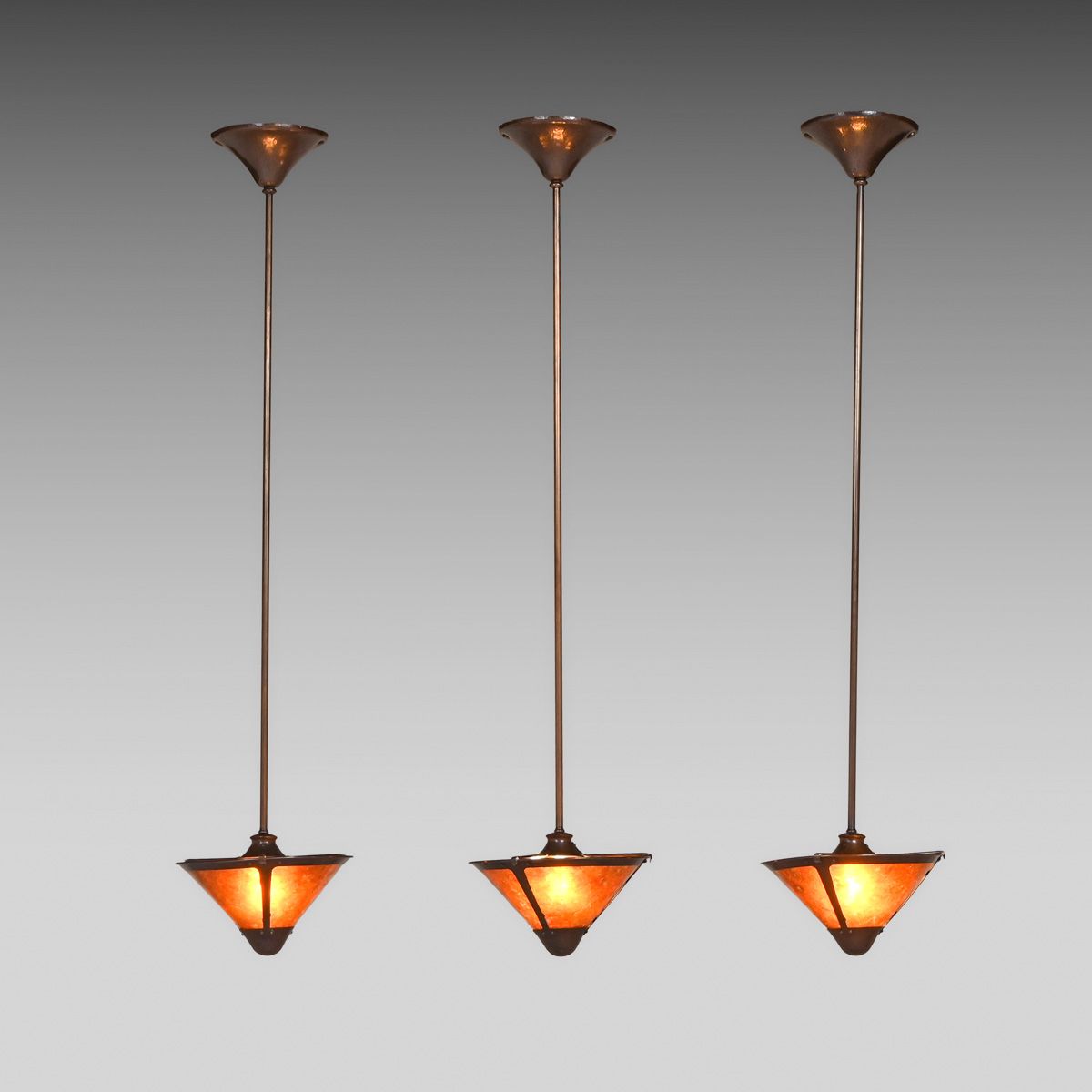 - Michael Adams - Aurora Studios Set of 3 Hammered Copper & Mica Hanging Lights c2000