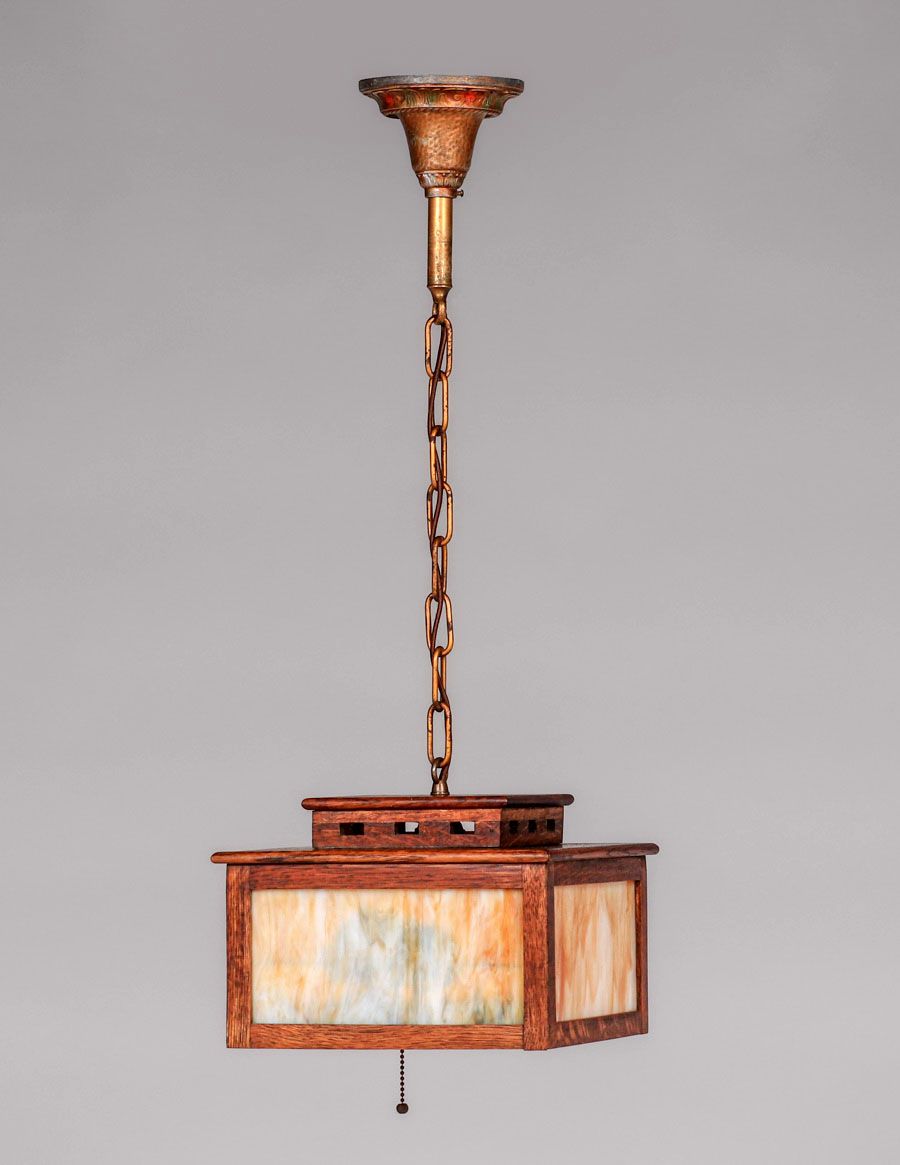 - Peterson Art Furniture Co – Faribault, MN Oak & Slag Glass Prairie School Hanging Lamp c1910