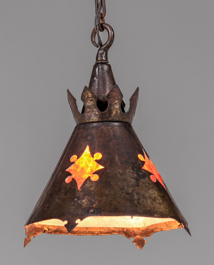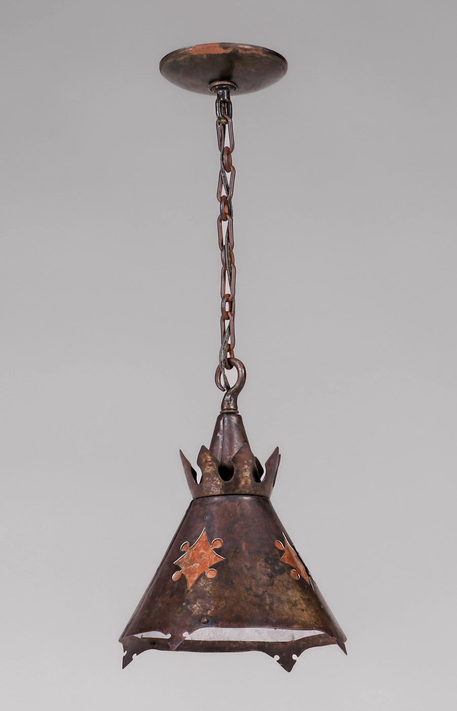 - Samuel Yellin Iron & Mica Hanging Light c1920