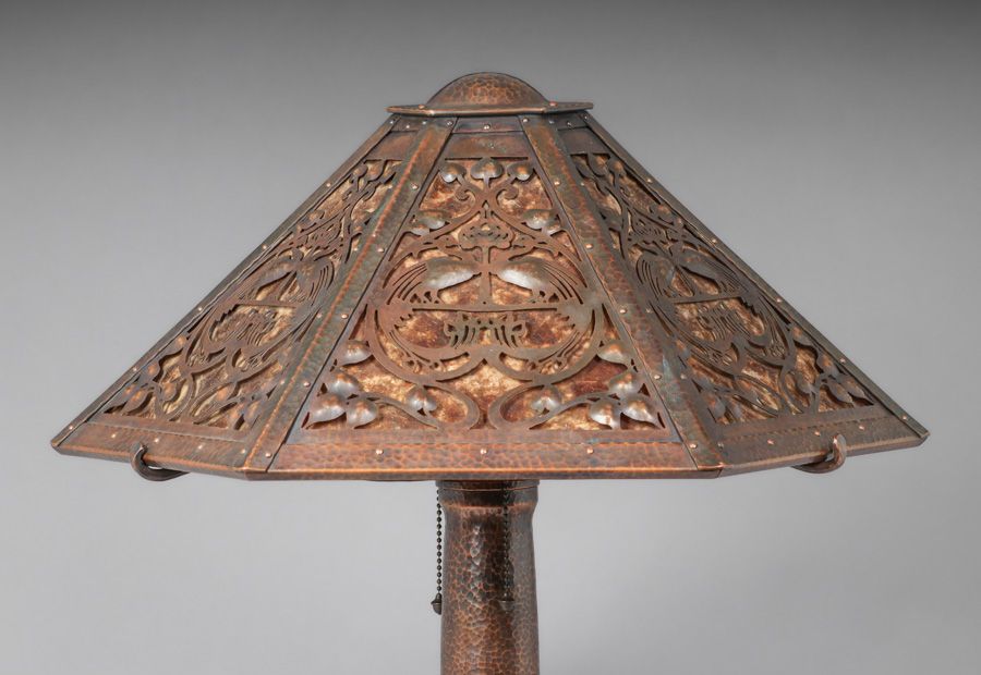 - Contemporary Steve Helberg Hammered Copper & Mica Peacock Cutout Lamp c2010