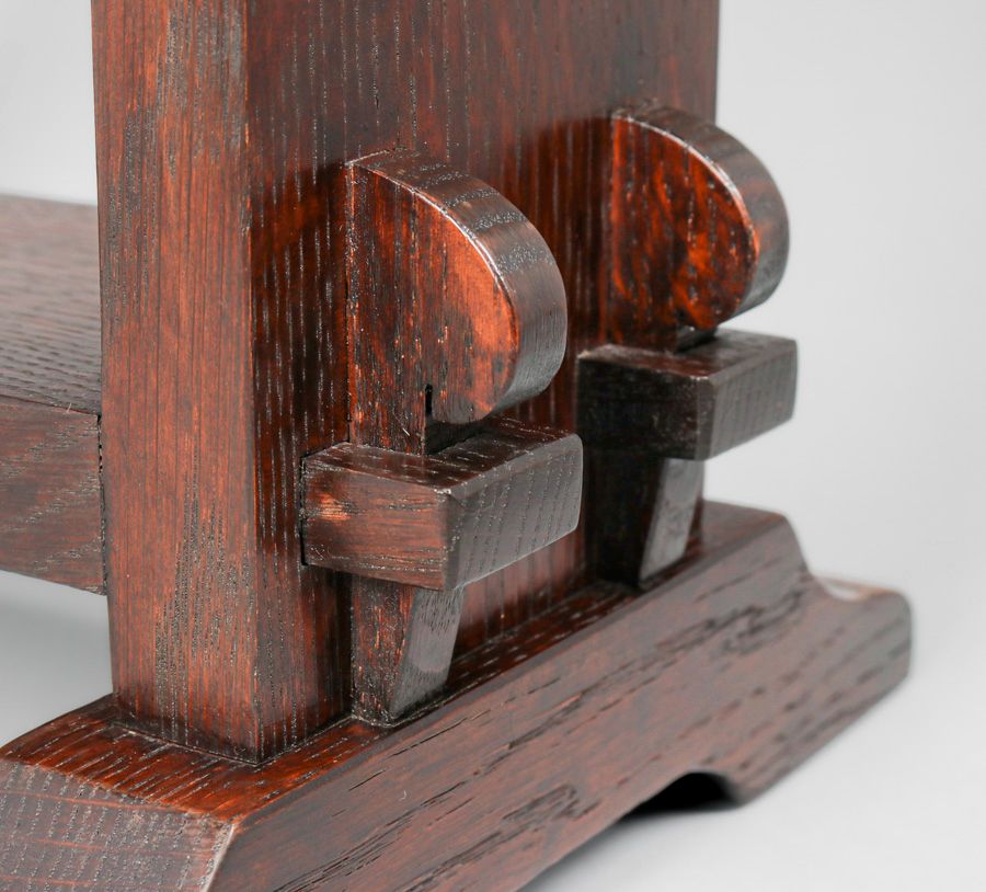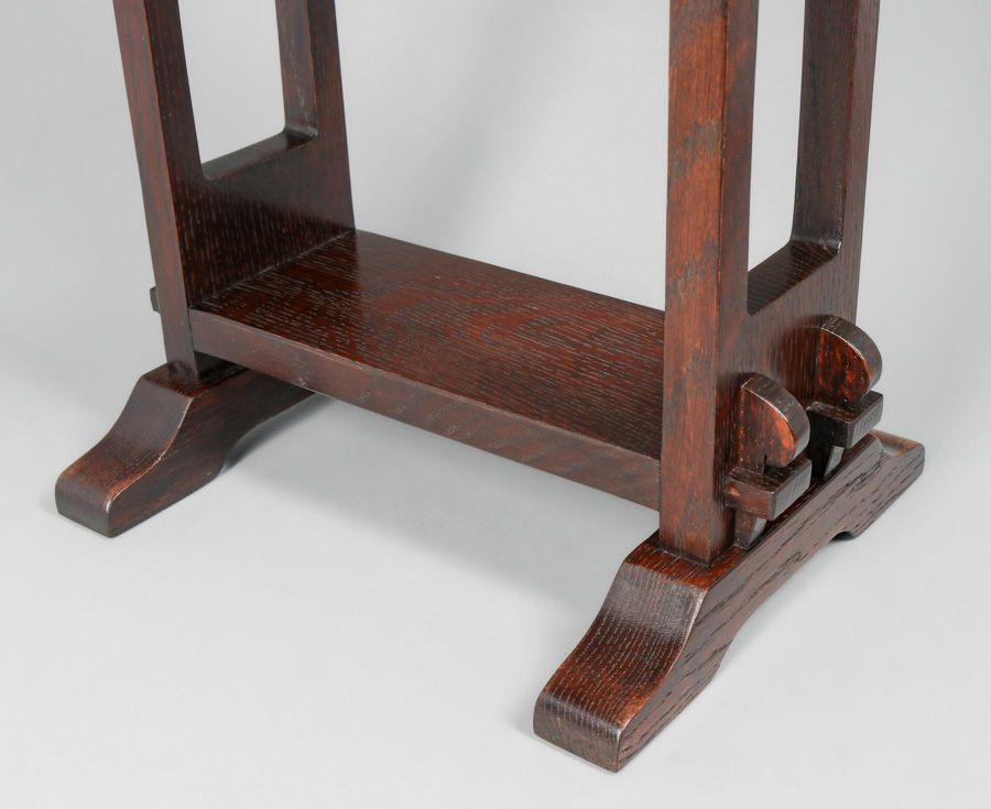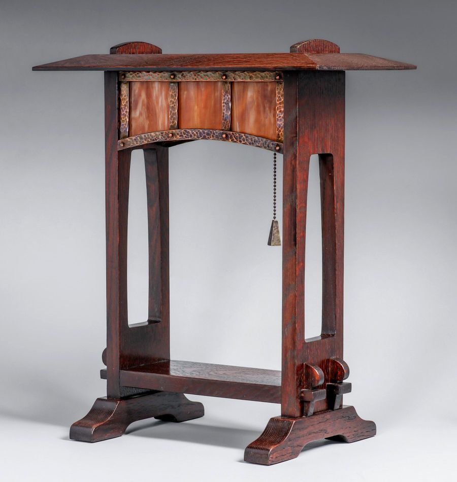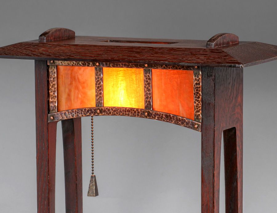 - Contemporary Steve Helberg Hammered Copper, Oak & Slag Glass Cutout Prairie Lamp 2002