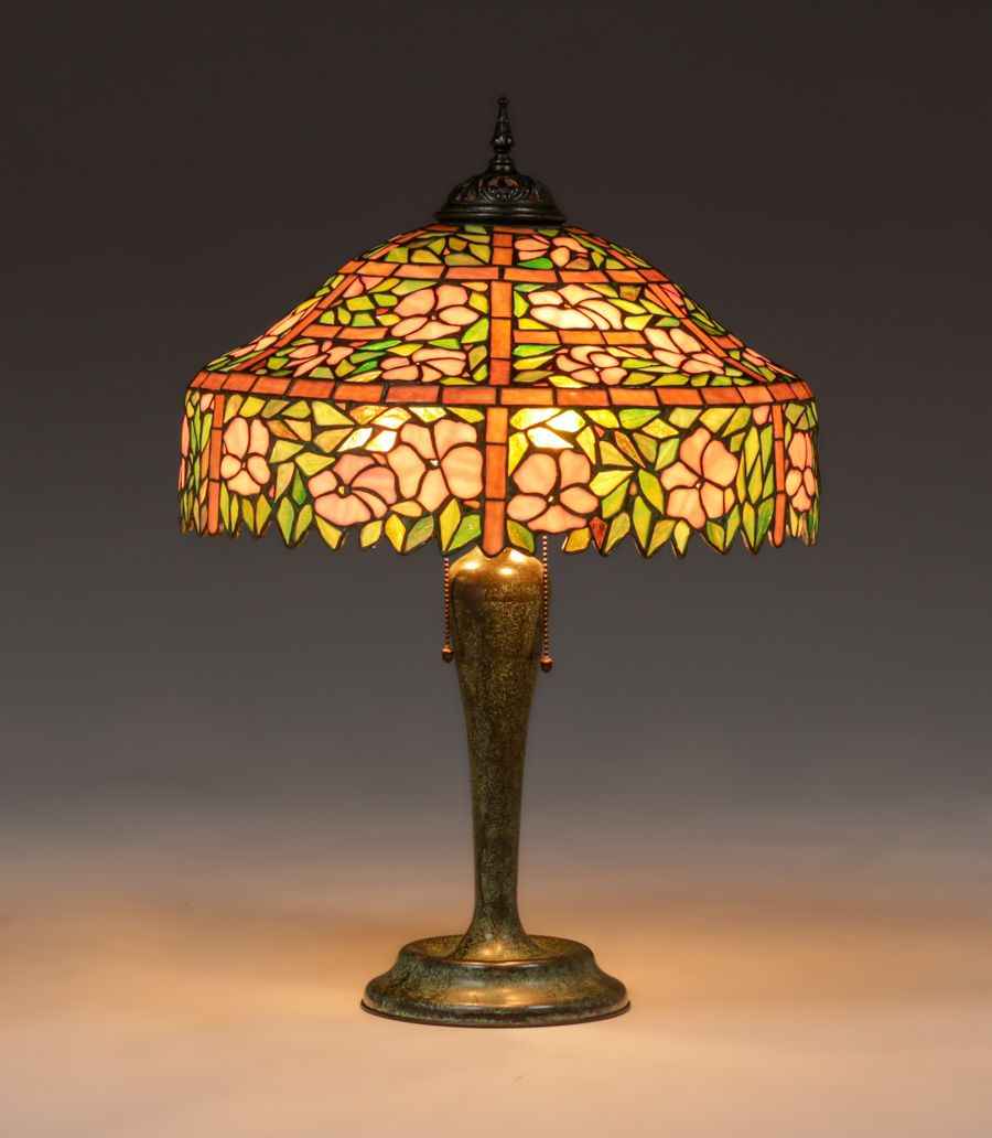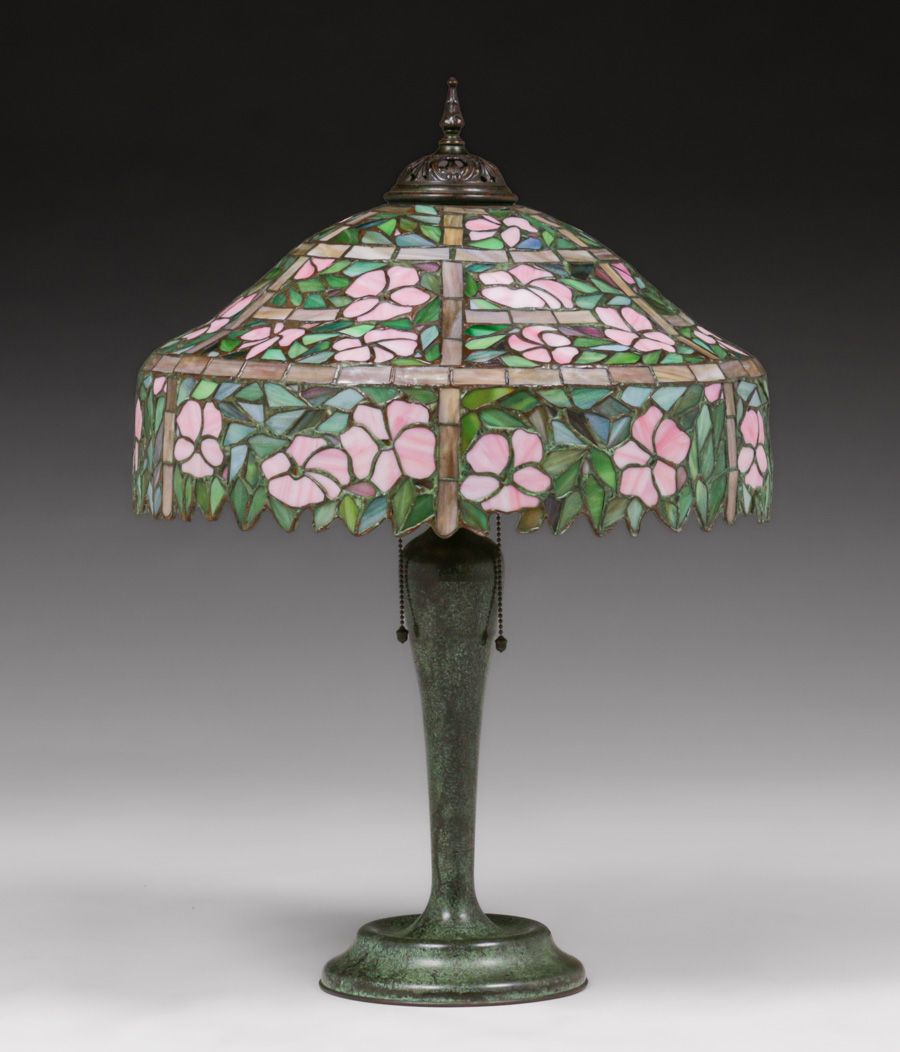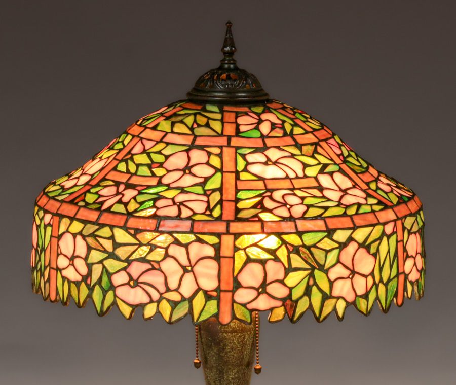 Large Unique – Brooklyn, NY Leaded Glass Lamp c1910. Unsigned. Excellent original patina. Original leaded glass in excellent condition. 27″h x 18.25″d