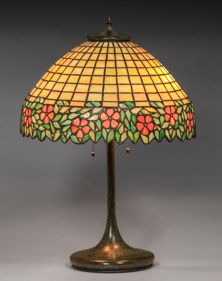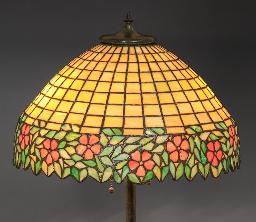 - Unique Art Glass and Metal Company, Brooklyn, NY – Floral Leaded Glass Lamp c1910