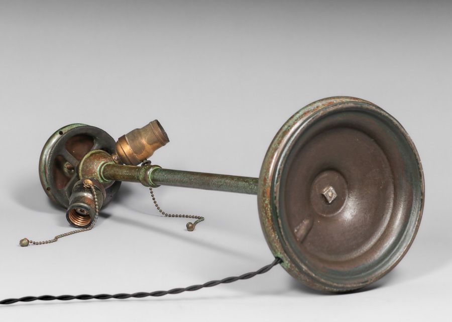 Unique Art Glass and Metal Company , Brooklyn, NY – Floral Leaded Glass Lamp c1910. When Louis Comfort Tiffany’s patent on the copper foil / leaded glass technique expired in 1903, Unique Art Glass and Metal Company was one of several companies that adopted Tiffany’s techniques and competed directly with Tiffany Studios. Unsigned. Excellent condition. 24″h x 16.5″w SOLD