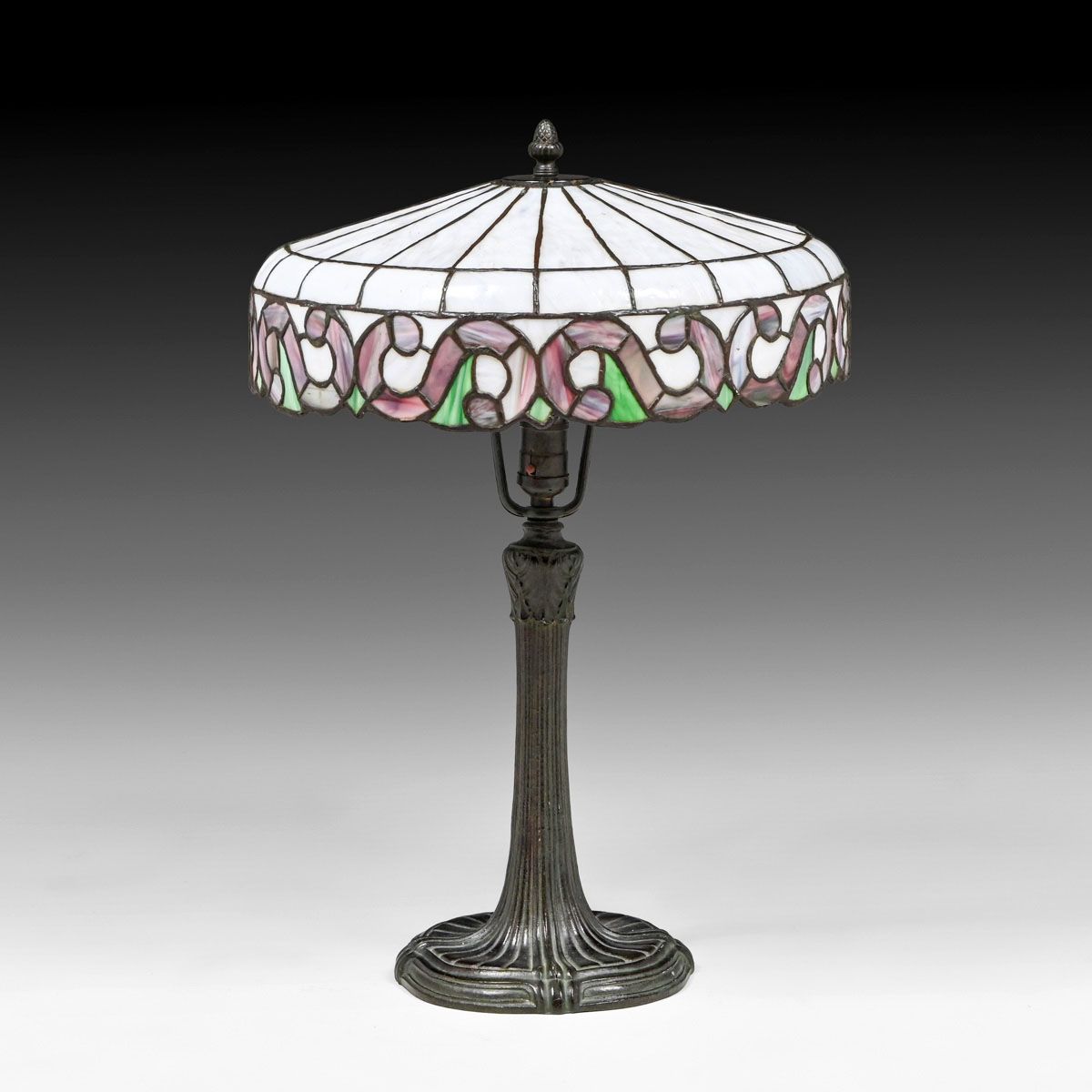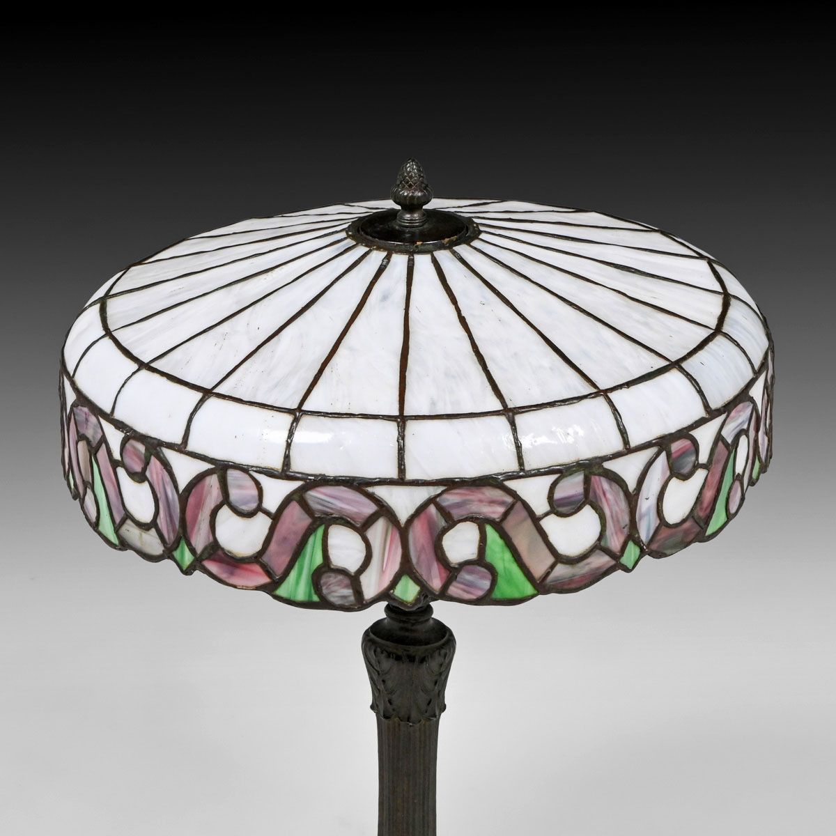 J.A Whaley Co - New York Leaded Glass Lamp c1915. Unsigned. Leaded glass shade in near perfect condition. Excellent original patina. 22.5"h x 16"d