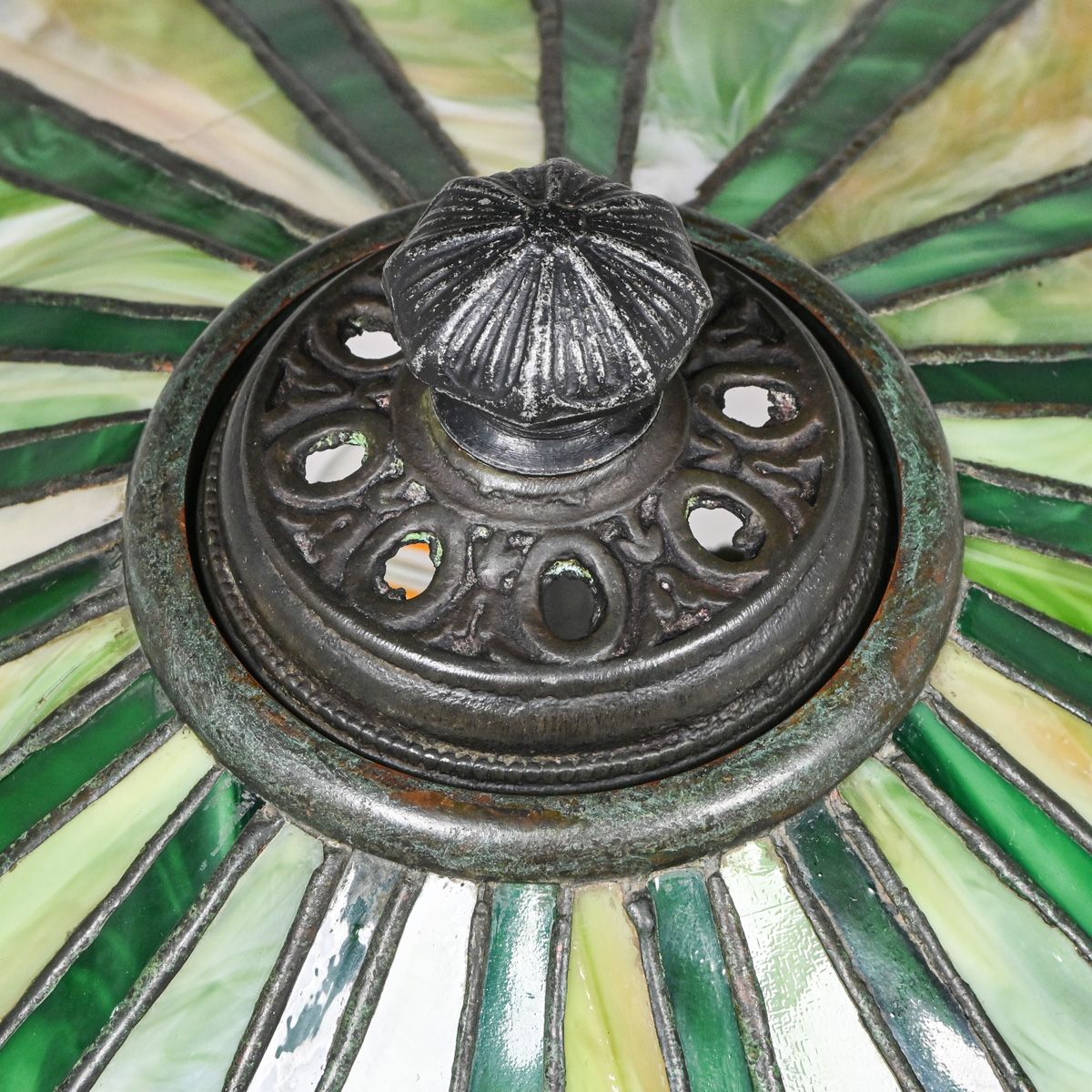 - Wilkinson Green Geometric Leaded Glass Lamp c1910